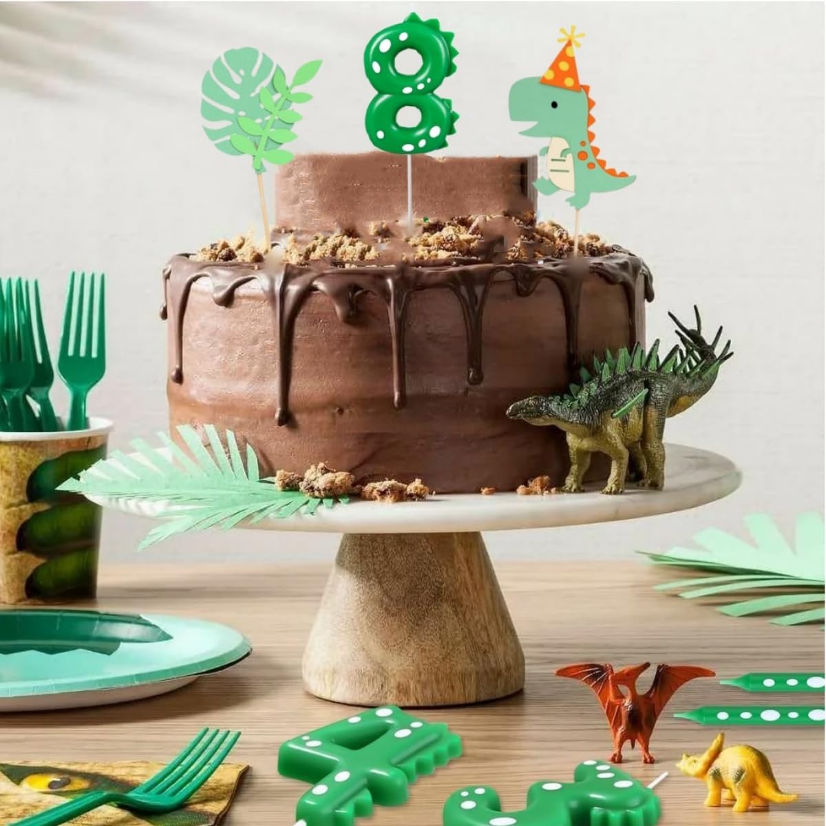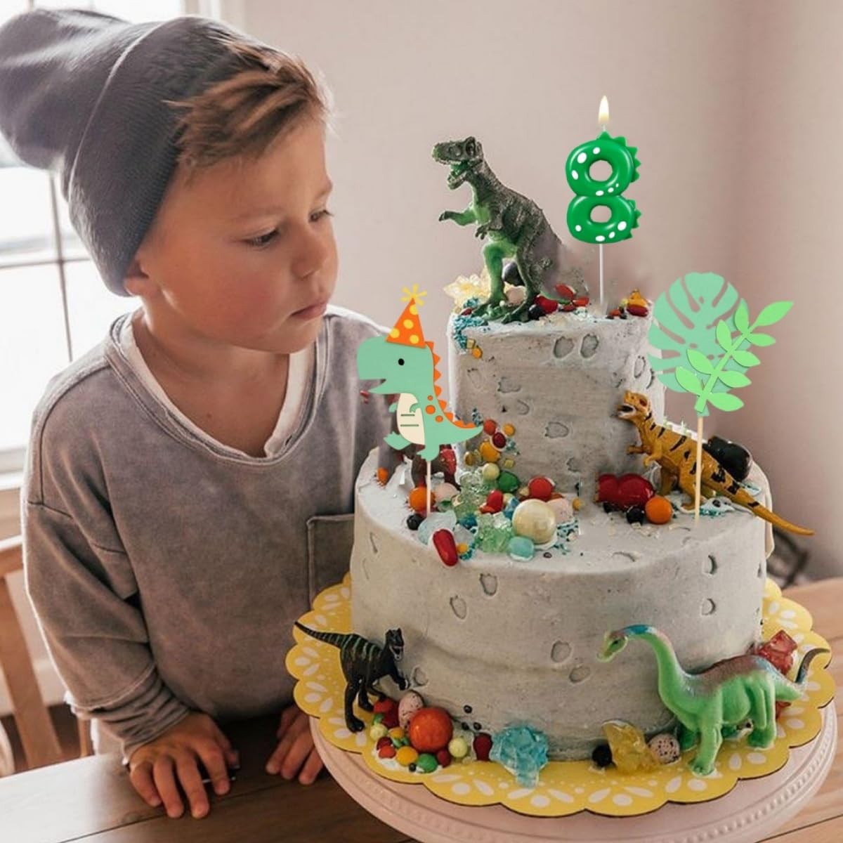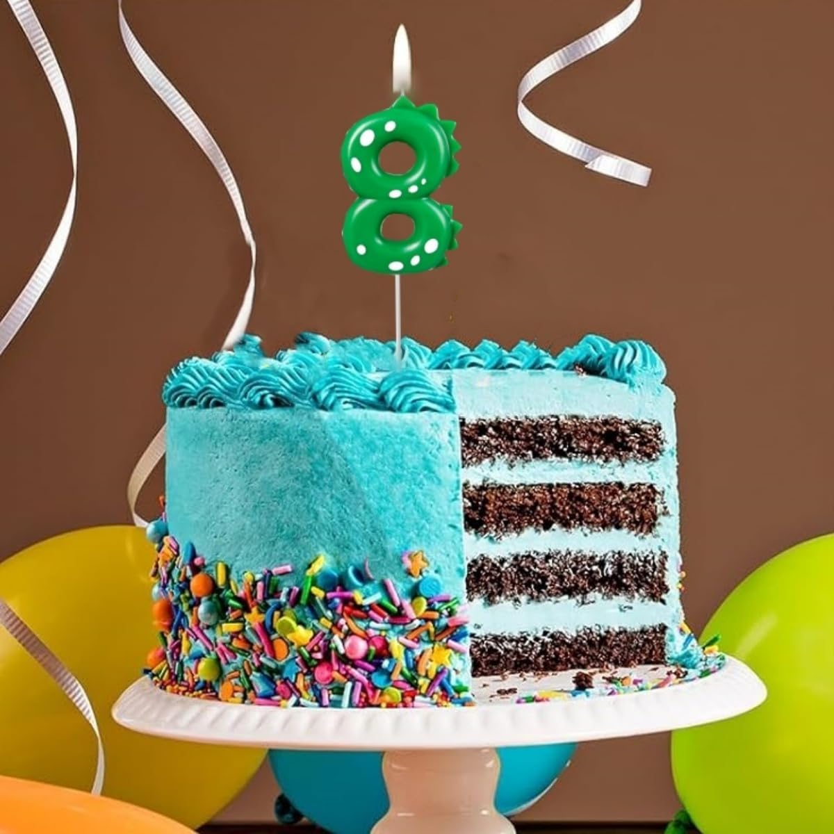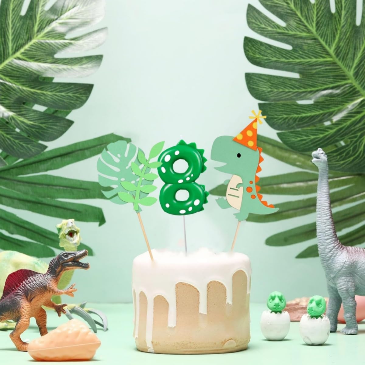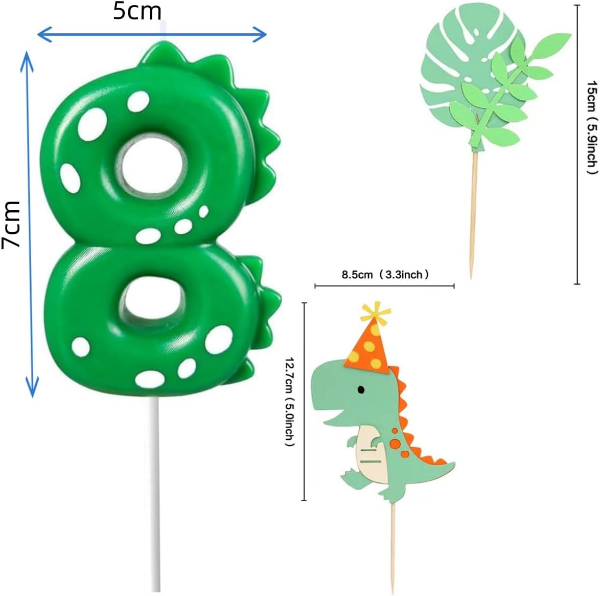 Decorazione per torta a forma di dinosauro in 3D realistica: il set include 1 candela con numero in 3D e 2 decorazioni per torta a forma di dinosauro. Perfetta per torte di qualsiasi dimensione. Texture realistiche di dinosauri e colore verde brillante per un **effetto accattivante** sulle torte di compleanno. Universalmente applicabile: Adatto a temi decorativi come Jurassic Party, Dino Adventure o Jungle Mottos. Adatto ai bambini e rispettoso dell'ambiente: Materiale: realizzato in **paraffina atossica** e **plastica riciclabile**, inodore e adatto al contatto con gli alimenti. Supporto stabile: lo stelo spesso della candela impedisce che si ribalti sulle superfici lisce della torta. Facile da usare: i topper possono essere facilmente inseriti nel fondente, nella crema al burro o nel formaggio cremoso, senza danneggiare la torta. Perfetto per momenti indimenticabili: Occasioni: compleanni per bambini, baby shower, feste a tema dinosauri, feste di ritorno a scuola o eventi a sorpresa. Brucia le candele: abbastanza tempo per desideri e foto. Le decorazioni sono **riutilizzabili** per future celebrazioni. Atmosfera stravagante:** combina il set con stampi da forno a forma di dinosauro, decorazioni da tavola o sacchetti regalo per un **tema completo**. Confezionato in modo pratico e durevole:**Scatole singole:** Candela e decorazione separatamente in cartone antiurto, per proteggerle da rotture durante la spedizione. Riutilizzabili: i topper in plastica robusta possono essere lavati dopo la festa e usati come decorazione per la stanza. Design piatto salvaspazio per una facile conservazione negli armadietti della cucina o in scatole decorative. Regalo ideale per gli amanti dei dinosauri:Pronto all'uso:Non richiede assemblaggio: basta attaccarlo alla torta e accenderlo. Design limitato: motivo Dino – ordina ora prima della prossima stagione dei compleanni