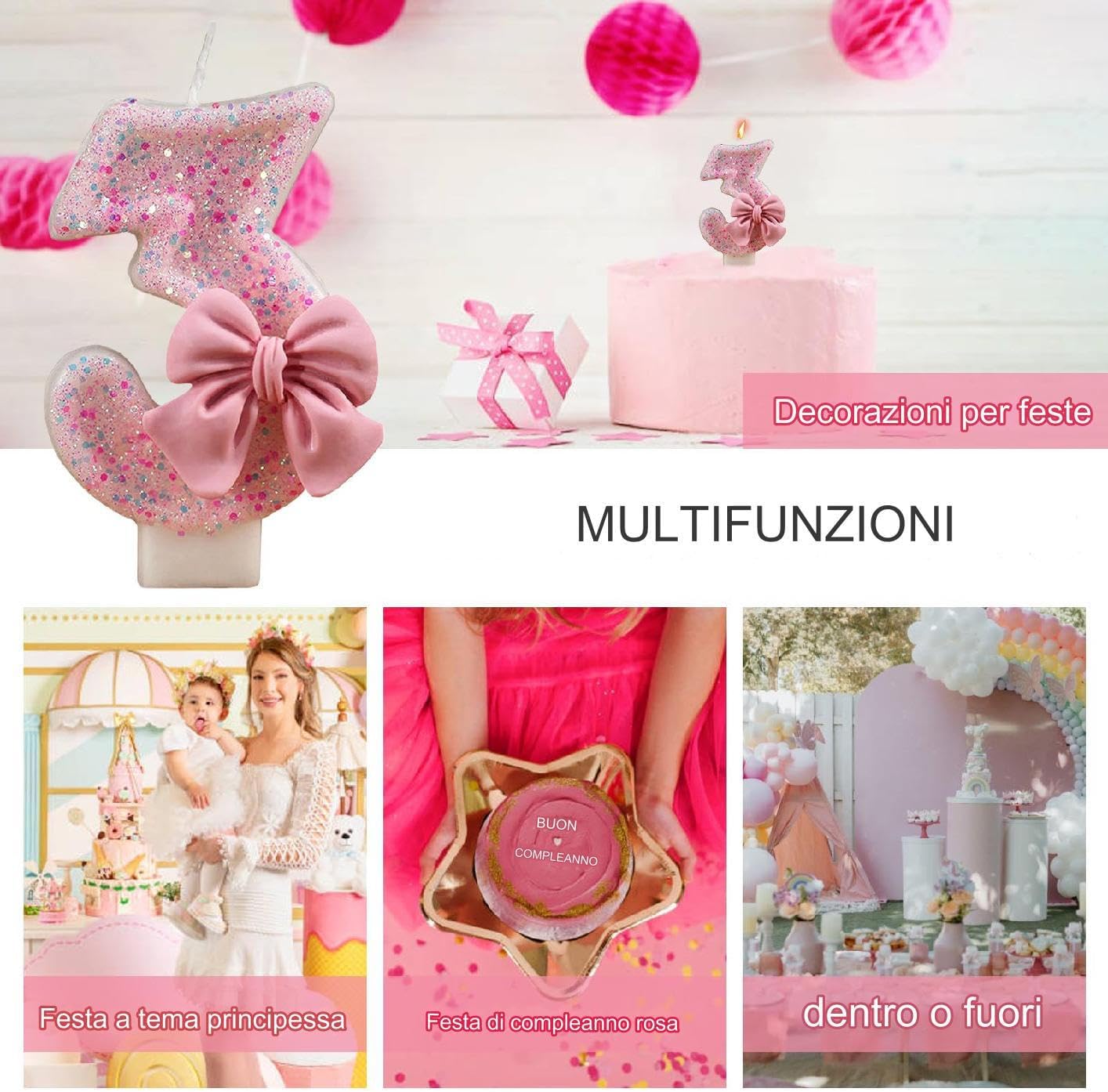 Candela di numeri scintillanti: solleva la tua torta con questo splendido numero di candele di compleanno che combinano un design artistico con un'estetica scintillante. Infondere la gioia nella celebrazione con ogni fiamma abbagliante Tema rosa: questo numero di candele di compleanno presentano un elegante ornamento di Bowknot in un bellissimo colore rosa, garantendo di far risaltare l'occasione. per qualsiasi festa a tema principessa o rosa Sicuro per il bambino: realizzato con materiale di sicurezza, queste candele assicurano che sia sicura durante l'uso, rendendole al sicuro per i bambini e perfette per qualsiasi celebrazione Uso semplice: crea ricordi gioiosi con questo numero di candele di compleanno. L'affascinante bagliore di queste candele dura durante le celebrazioni, all'interno o all'esterno. Goditi un facile inserimento per sollevare la torta con una fiamma stabile che luminosa Presenti preziosi: Rendi ogni compleanno speciale per i bambini. Questo numero di candele di compleanno è più di una semplice decorazione; È un modo ponderato e significativo per mostrare amore e benedizioni