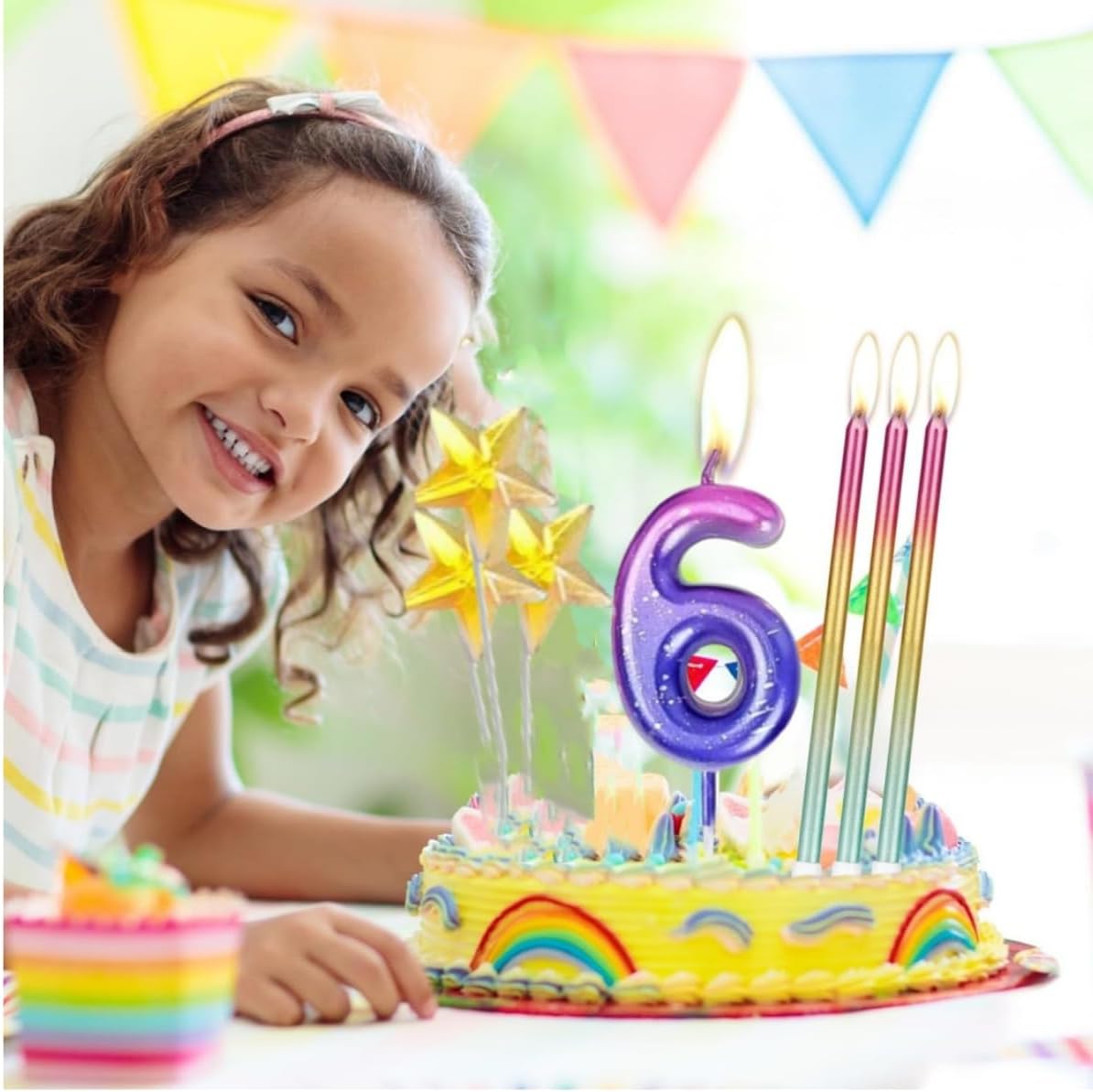 Design e materiale sfumati: questa candela con numeri colpisce per la sua delicata sfumatura di colore nei toni pastello e i dettagli scintillanti. Realizzato in cera di paraffina ecologica, è inodore, senza fumo e sicuro per gli alimenti, sicuro per torte e bambini Decorazione perfetta per le feste: il set include 1 candela digitale + 5 decorazioni per torte a forma di stella dorata. La candela principale è di ca. 12,5 cm, ideale per torte, cupcake o dessert Facile da usare e riutilizzabile: grazie al supporto robusto, la candela può essere facilmente inserita nella torta. Dopo l'uso, basta pulirlo e riporlo in un luogo asciutto: manterrà la sua forma e potrà essere conservato per le feste future Un momento clou suggestivo per ogni occasione: aggiungi un tocco di eleganza a compleanni, matrimoni o anniversari! La candela sfumata crea un'atmosfera romantica attraverso una combustione uniforme e un leggero tremolio, mentre le stelle aggiungono sottili riflessi Candele con numeri economiche ed eleganti: una sola confezione può farti risparmiare un viaggio al negozio. Queste bellissime candele rimuovono facilmente le gocce di cera dalle torte e sono comunque commestibili. Può soddisfare le esigenze della tua festa di compleanno