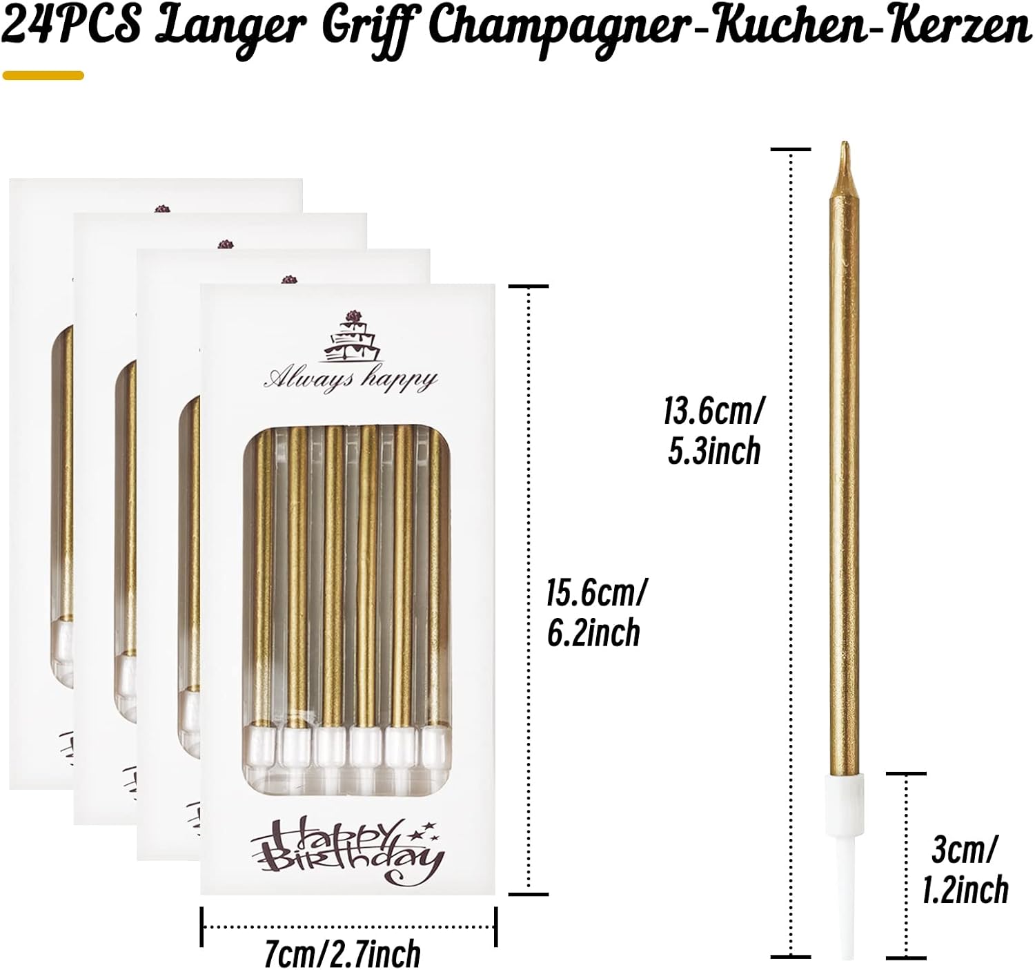 【Candele di compleanno sottili e lunghe per torta】 Riceverai 24 candeline di compleanno in 4 scatole, ogni scatola contiene 6 candele. L'altezza delle candeline di compleanno è di 14 cm e la durata di combustione è di circa 7 minuti. Ciò ti consente di cantare "Happy Birthday" per diversi round. 【Candele di compleanno champagne】 Le candeline di compleanno color champagne sono adatte sia per ragazzi che per ragazze. I colori delle candele sono molto belli e brillanti e creavano una scena bellissima. I colori pastello li rendono davvero sofisticati e versatili. 【Tenere bene con il supporto】 Alla base è presente una copertura di plastica per evitare che la cera goccioli sulla torta. Le candele sottili creano meravigliose decorazioni per torte. 【Candele lunghe inodore e non tossiche】 Le candeline di compleanno sono realizzate in materiale di cera di alta qualità, inodore e non tossico, sicuro per l'uso. Le candeline sottili possono decorare perfettamente la tua torta. 【Bellissime candele per ogni occasione】 Le classiche stelle filanti per torta sono perfette per compleanni, festa della mamma, feste di matrimonio, addio al nubilato o baby shower, ecc. Se vuoi rendere la tua festa più colorata e creativa, queste sono altamente raccomandate.