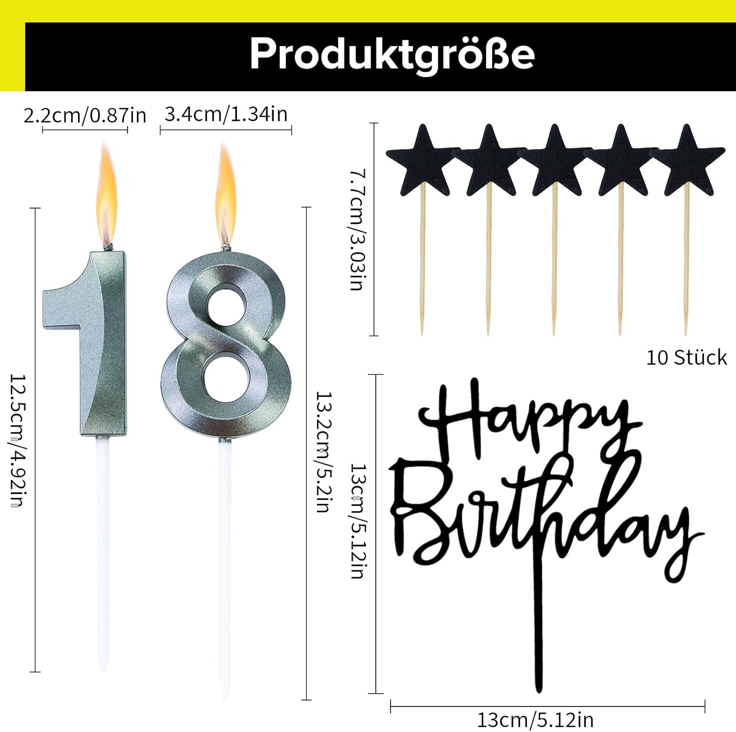 Materiali sicuri e di alta qualità: le candele per il 18° compleanno sono realizzate in cera di alta qualità, atossiche e sicure da usare. Bruciano in modo uniforme e di lunga durata, sono facili da indossare e non sbiadiscono così velocemente, in modo da poterli utilizzare senza preoccupazioni Design unico: questa candela nera con numeri si abbina al classico topper per torta di compleanno e dona alla candela un aspetto elegante e affascinante. Rendi indimenticabile la tua festa Superficie scintillante: le candele di compleanno 3D con numeri sono attraenti e brillanti. Le candele nere creano un'atmosfera calda e romantica per la tua festa Versatile: questa candela numerica è adatta per ogni occasione importante. Che si tratti di compleanni, matrimoni, baby shower, anniversari, lauree o altri giorni importanti: aggiungerà un tocco speciale alla tua festa Contenuto della confezione: riceverete 1 inserto nero per torta di compleanno, 1 candela con il numero 18 e 10 inserti neri per torta a forma di stella, adatto per la maggior parte delle torte