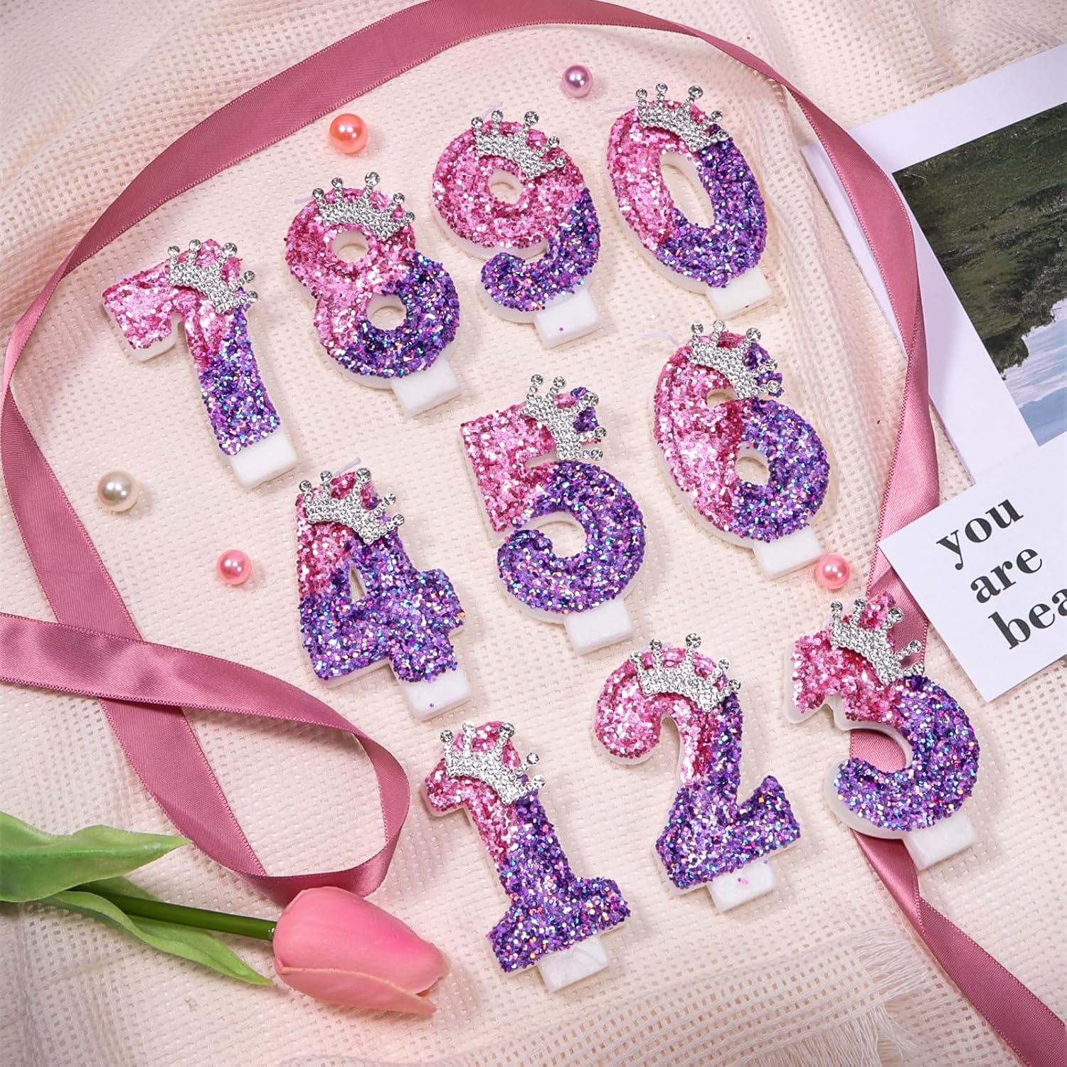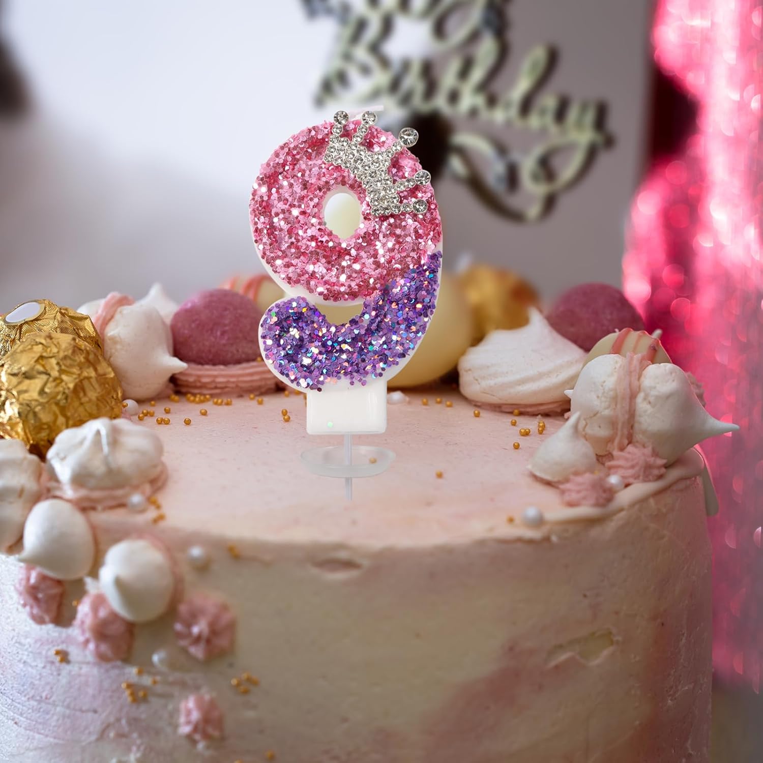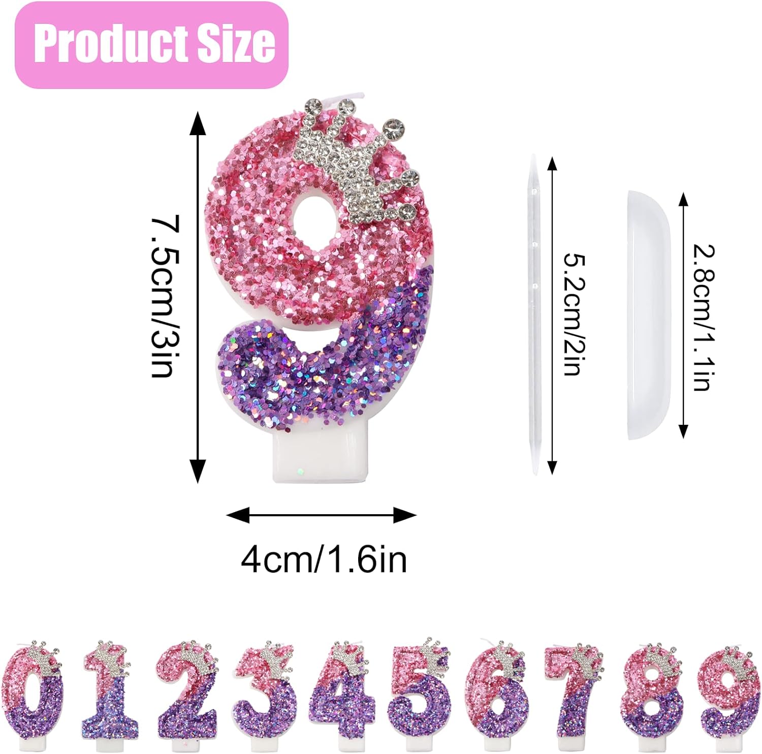 Materiale di protezione ambientale: le candeline di compleanno con numeri glitter sono realizzate a mano e realizzate con materiali ecologici. Non emanano odori sgradevoli e sono sicuri da usare, così il tuo momento di festa rimane spensierato. Design e dimensioni della candela: Le nostre candele numeriche rosa mostrano il numero 9, misurano circa 7,5 cm di altezza e 4 cm di larghezza. Con una lunghezza totale di circa 12 cm (compreso il portacandele), queste candele sono ideali per decorare la maggior parte delle torte di compleanno e nuziali. Design raffinato: le nostre candeline personalizzate per la decorazione di torte sono caratterizzate dal loro aspetto tridimensionale. La corona argentata di ogni candela è incollata a mano e decorata con paillettes rosa e viola per aggiungere ancora più glamour alla tua torta di compleanno. Applicazione versatile: le candeline per torta di compleanno sono perfette per compleanni, anniversari, feste di Natale, feste di pensionamento, riunioni di famiglia e matrimoni. È il regalo perfetto per la famiglia e gli amici. Libertà di combinazione: puoi scegliere qualsiasi numero da 0 a 9 o qualsiasi combinazione. Ogni candelina per torta è confezionata in una scatola separata con un imballaggio protettivo in plastica per fornire una buona protezione ed evitare danni durante il trasporto.