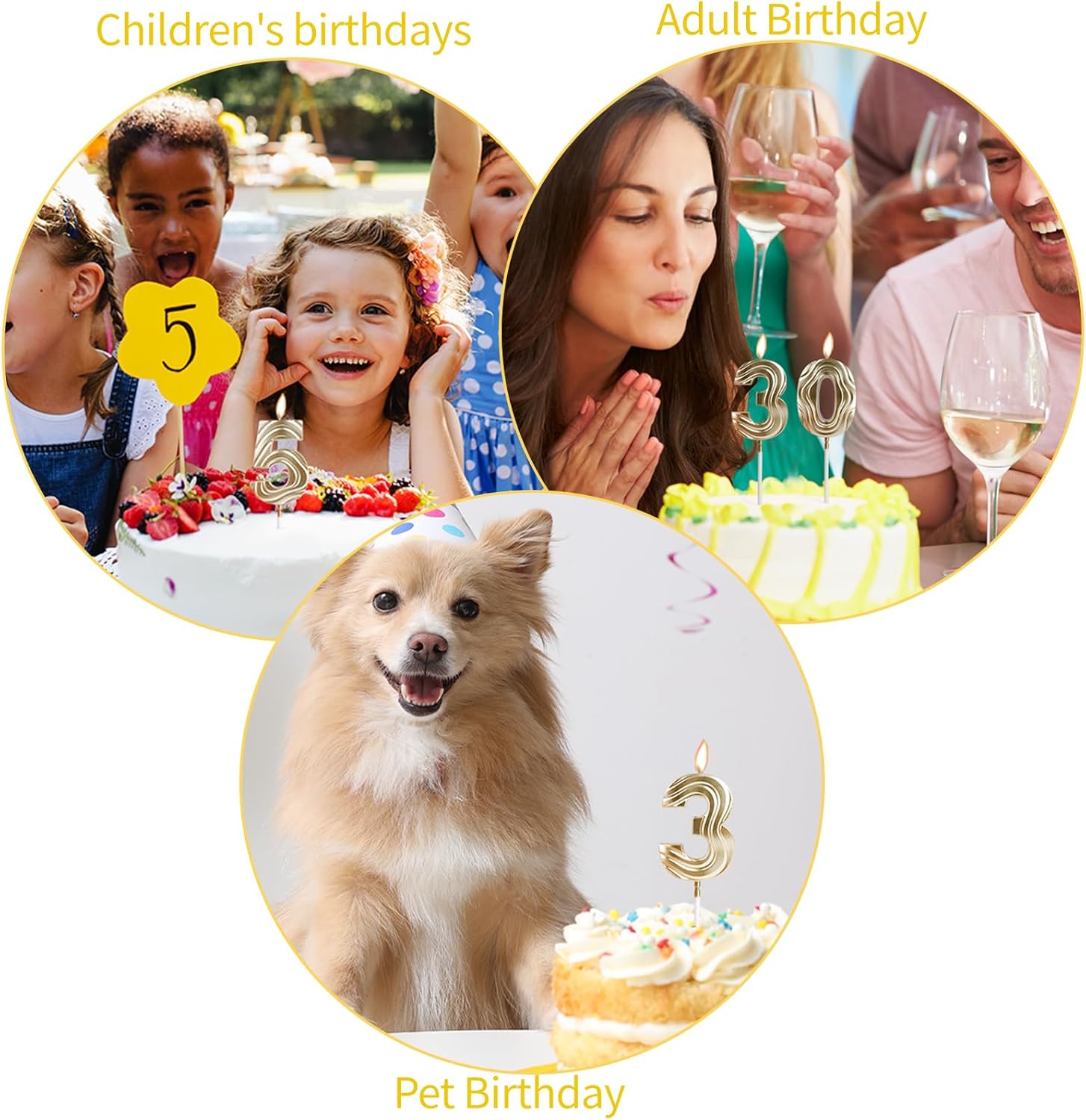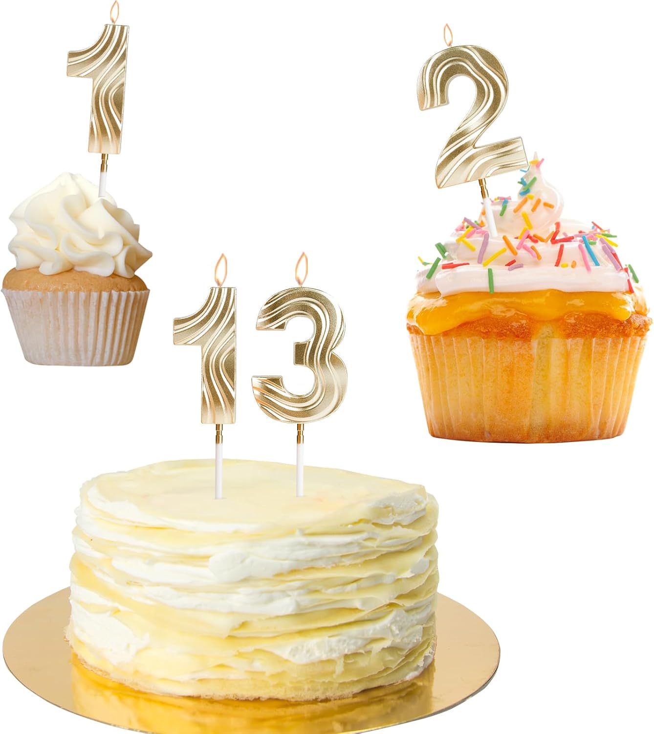 Candele di compleanno con numeri, candele dorate, candele per 60° compleanno, candele di compleanno per torta, candele progettate in 3D per uomini, donne, compleanni, matrimoni, anniversari, feste,