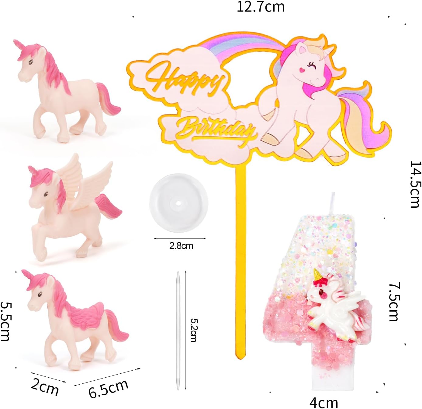 Contenuto della confezione: candela di compleanno rosa e bianca numero 4, 1 decorazione per torta con unicorno, 3 giocattoli di plastica con unicorno. Le candeline con numero di compleanno sono lunghe circa 7,5 cm e larghe 4 cm e sono adatte come decorazione per torte per la maggior parte dei compleanni e matrimoni. Le nostre candele con numeri di unicorno hanno un aspetto scintillante e una forma 3D, che può essere facilmente combinata con diversi temi e colori delle feste. Il set di candele di compleanno rende la tua torta di compleanno più attraente. Queste candele di compleanno sono realizzate in materiale di cera di alta qualità. Sono senza fumo e portatili, facili da inserire e leggeri. Ogni candela numerica è imballata in una scatola individuale per garantire una buona protezione e ridurre i danni durante il trasporto. Le candele all'unicorno sono perfette per compleanni, baby shower, anniversari, feste di pensionamento, riunioni di famiglia, matrimoni, luau e altro ancora, rendendo la decorazione della tua festa più significativa e memorabile.