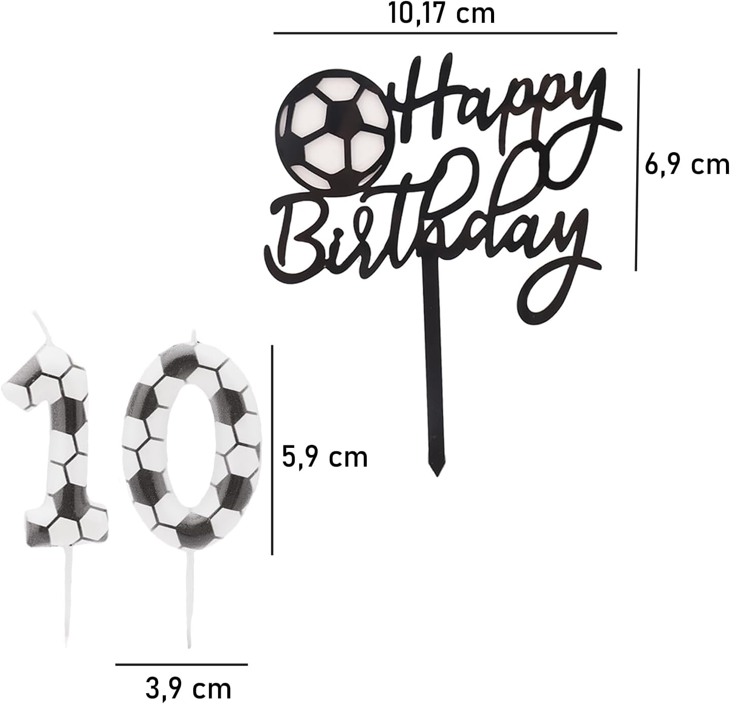 Candele di compleanno – numeri, set da 10 pezzi, calcio, bambini e per torta