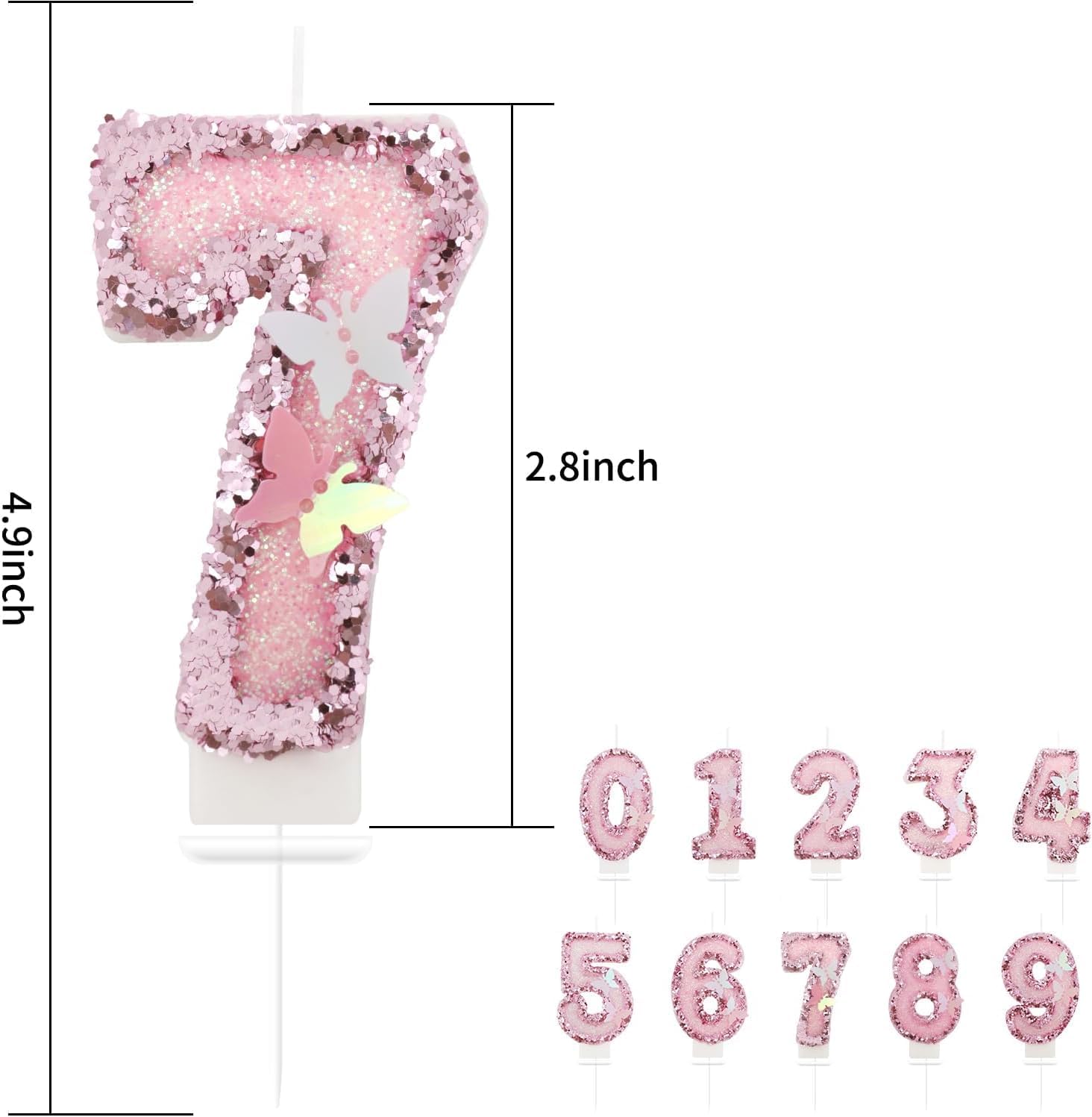 Contenuto della confezione: riceverai 1 candela con numero di compleanno realizzata in cera di paraffina di alta qualità, facile da usare e adatta alle tue esigenze. Materiale: le nostre candele con numeri per feste sono realizzate in cera senza fumo di alta qualità, il materiale è sicuro e affidabile, facile da inserire e accendere, puoi usarlo con fiducia. Design raffinato: le candele con numeri sono decorate con farfalle e paillettes glitterate, originali e accattivanti, un regalo perfetto per la tua famiglia e i tuoi amici. Potrete regalarle in occasioni speciali come compleanni, Natale e così via. Combinazione libera: le candeline con numeri glitterati hanno un aspetto grazioso e potrete scegliere qualsiasi numero da 0 a 9 o creare qualsiasi combinazione desideriate per festeggiare compleanni, anniversari e così via. Ampiamente utilizzate: le candeline con numeri possono essere utilizzate per qualsiasi tipo di festa, inclusi compleanni, matrimoni, anniversari aziendali, ecc. Con le loro bellissime farfalle e paillettes, sono adatte anche per decorare le feste.
