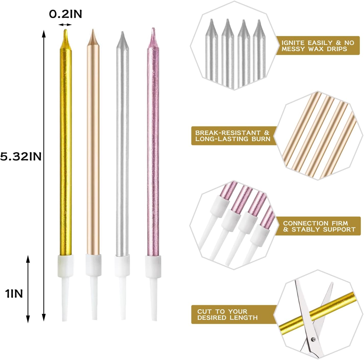 Celebrazione vibrante: Esalta la tua festa con le nostre candele lunghe di compleanno! Queste candele colorate sono perfette per torte e cupcake, rendendo ogni compleanno, matrimonio o anniversario un'occasione memorabile Candele lunghe per torte: Con una lunghezza di 13,5cm/5,3 pollici, queste candele per torte di compleanno sono progettate per stare alte su qualsiasi torta Sicuro e non tossico: le nostre candele di compleanno per torte sono realizzate con materiali atossici di alta qualità. Goditi la tranquillità mentre festeggi, sapendo che queste candele sono sicure da usare Facile da usare: queste candele per torte di compleanno sono facili da inserire e rimuovere, consentendoti di allestire rapidamente le feste Versatili per ogni occasione: perfette per compleanni, matrimoni e anniversari, queste 18 candele di compleanno aggiungono un tocco festoso a qualsiasi celebrazione. Illumina i tuoi eventi e crea ricordi indimenticabili