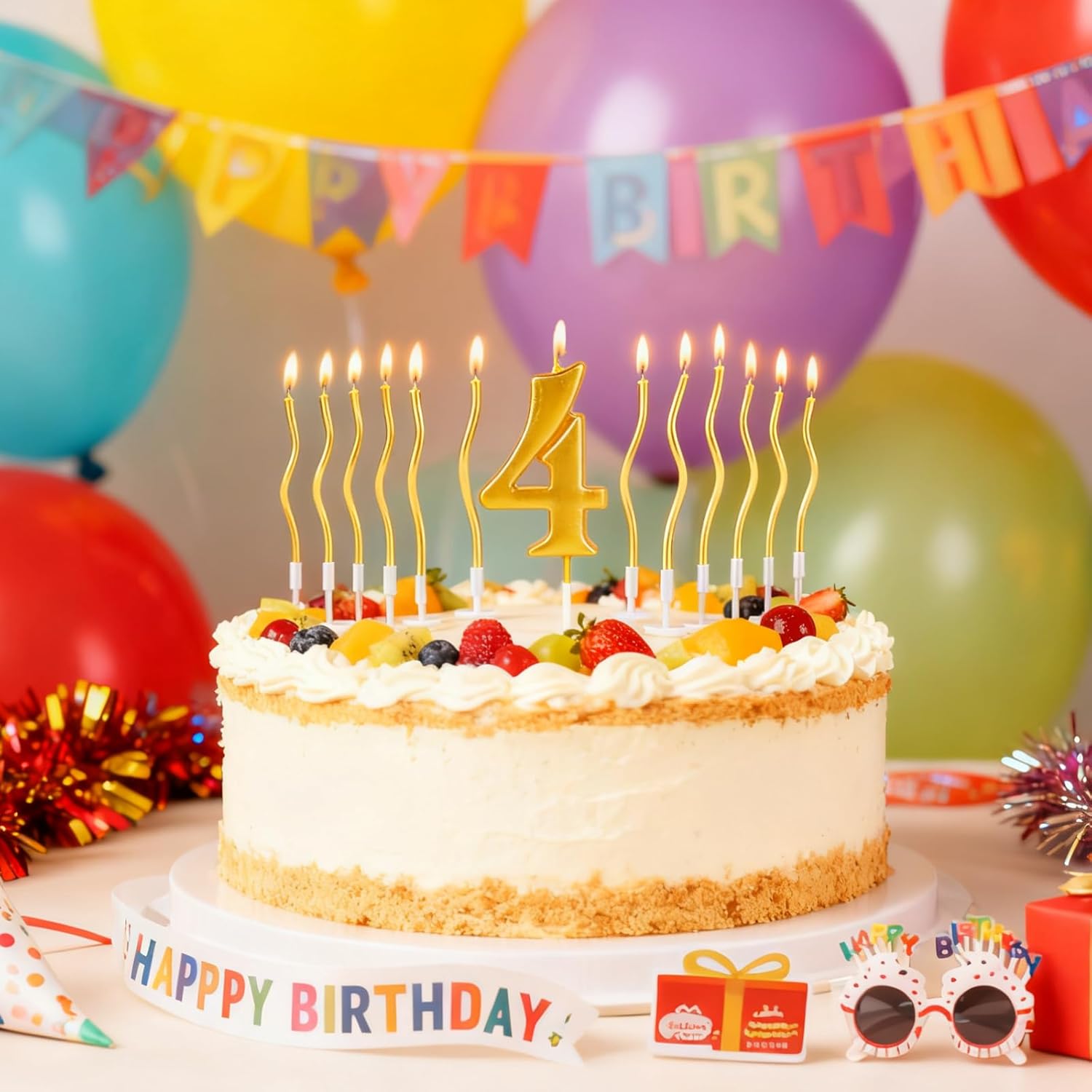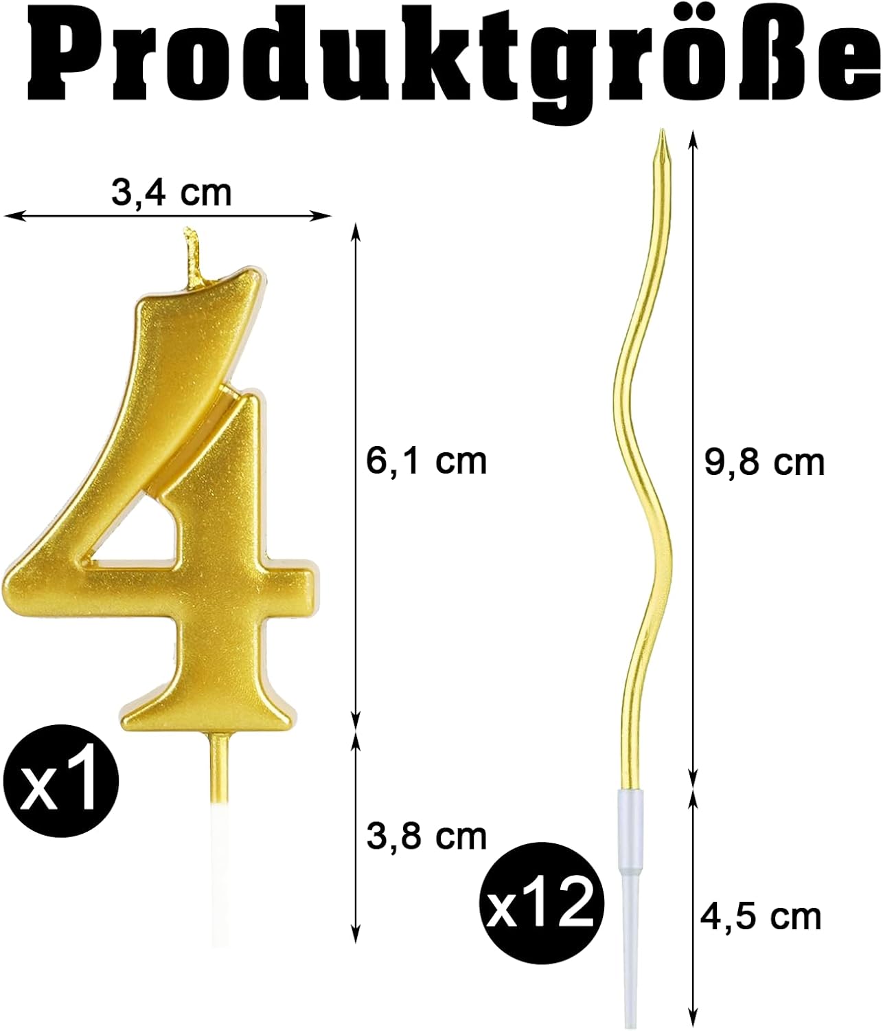 Set candele numero 4 oro - Il set contiene 1 candelina di compleanno 4 e 12 candeline dorate curve, che insieme creano un quadro generale armonioso. Questa combinazione rende ogni torta di compleanno con candeline una vera attrazione. Alta qualità e sicurezza: ogni candela 4 è realizzata con cera atossica di alta qualità e brucia in modo uniforme, senza gocciolamenti e quasi senza fumo. Grazie al supporto stabile, le candeline per torta di compleanno possono essere facilmente attaccate a qualsiasi torta o torta – perfette per candeline per torta, candeline per torta e candeline per torta di compleanno. Design elegante: queste candele dorate in elegante oro metallizzato donano ad ogni torta un tocco lussuoso e festoso. Ideale come candela per il 4° compleanno o decorazione elegante per anniversari e celebrazioni speciali. Versatile: queste candeline di compleanno non sono adatte solo per il 4° compleanno, ma anche per anniversari, compleanni di bambini, matrimoni e molte altre celebrazioni. Le candele dorate lucenti e le eleganti candeline di compleanno portano brillantezza ad ogni celebrazione. Atmosfera festosa - La candela di compleanno 4 crea un'atmosfera allegra ed elegante con la sua calda luce dorata. Perfette come scintillanti candeline di compleanno e come elemento decorativo per ogni occasione speciale. Servizio clienti: puoi acquistare e utilizzare questo prodotto in tutta sicurezza. In caso di problemi dopo aver ricevuto il prodotto, contattaci. Ti risponderemo il prima possibile entro 24 ore. I tuoi suggerimenti ci aiutano a migliorare continuamente.