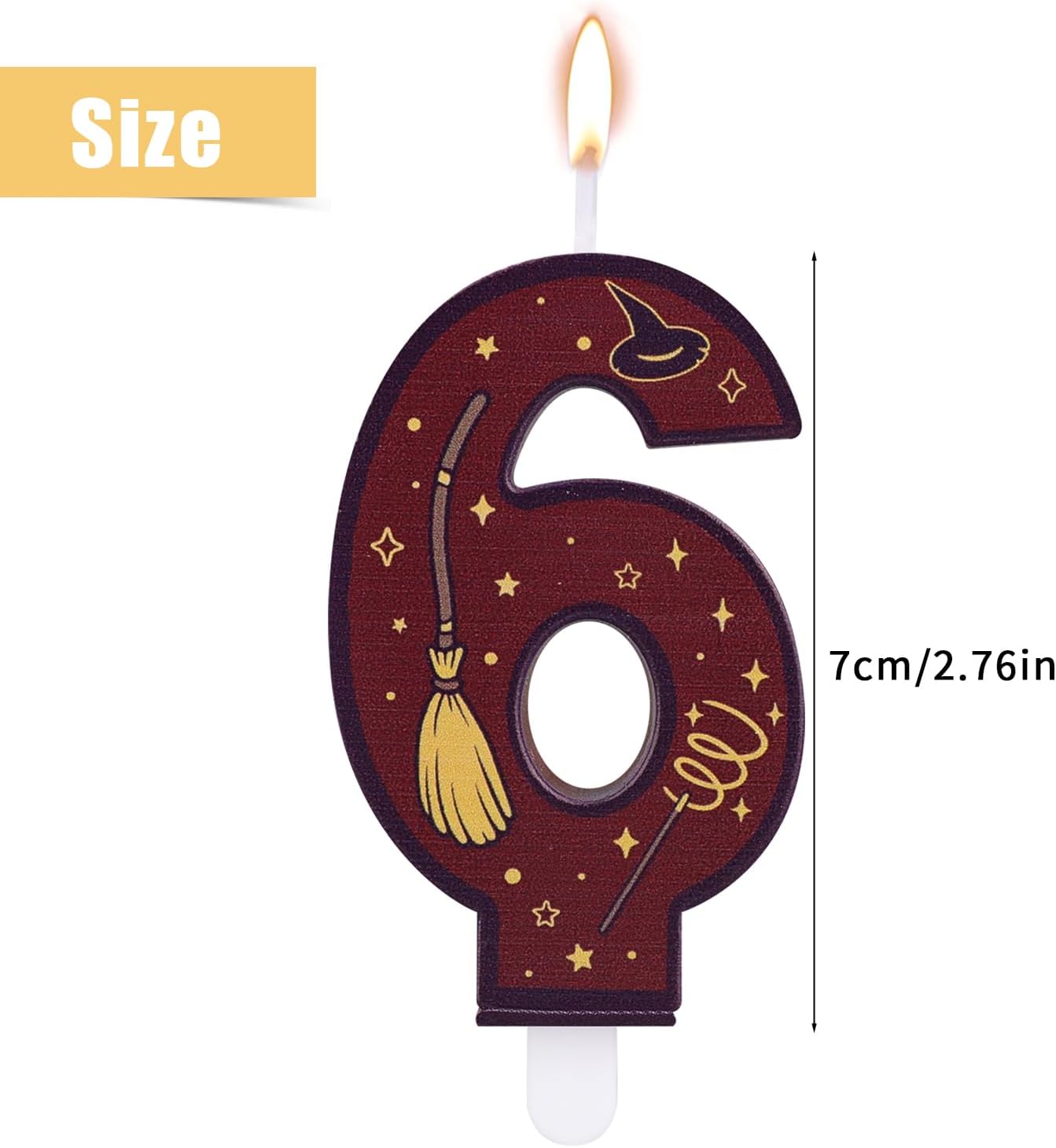 La confezione include: Riceverai 1 squisita candela a tema magico, che decorerà al meglio la tua torta e creerà per te un'atmosfera di compleanno magica, indimenticabile e affascinante. Materiale fantastico: questa candela a tema mago è principalmente realizzata in materiale di cera affidabile, senza odore speciale, tempo di combustione e bruciore stabile, dandoti un'esperienza di uso migliore. Design squisito: questa candela del numero di compleanno adotta principalmente un design a tema mago unico, con elementi classici come cappello da mago, scopa e bacchetta magica.Coloro a cui piacciono i maghi e i temi magici non dovrebbero perderlo. Ampiamente usato: le nostre candele a tema mago sono adatte per la maggior parte delle occasioni come decorazioni, come feste di compleanno, feste a tema magico, docce per bambini e feste di Halloween, creando un'atmosfera di compleanno magica indimenticabile. Dettagli delle dimensioni: questa candela a tema mago ha una lunghezza di 7 cm, che è una dimensione perfetta per abbinare la tua torta.Si prega di tenere la candela lontana dalle temperature alte e basse, non posizionarla in frigorifero e non posizionarla al sole a lungo.La candela è fragile, quindi per favore gestirla con cura.