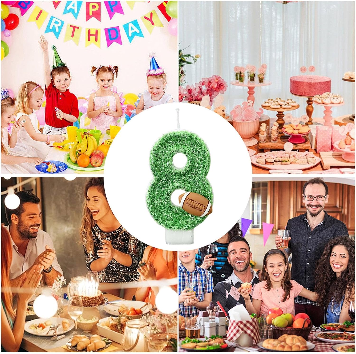 ➢ Blaze your Way to Victory: Abbraccia lo spirito del tuo gioco di palla preferito con le nostre candele di compleanno a forma di figura dal design unico, accuratamente progettate con glitter per un tocco di fascino e l'aggiunta perfetta a qualsiasi occasione a tema. Questi numeri che vanno da 0 a 9 sono sicuri di ispirare i fan di tutte le età Decorazione per torta Winsome: Illumina la tua festa di compleanno con le nostre candele a forma di figura abbaglianti con glitter verdi scintillanti. Dotata di un portacandele, queste candele senza fumo e inodori presentano un design a cera antigoccia che mantiene la tua torta pulita e senza disordine. ➢ Uso permanente: inizia la tua festa con le nostre candele di compleanno numerate che garantiscono un'esperienza senza stress. Con facilità d'uso e prestazioni durature, creano una combustione morbida e un'illuminazione accessibile. Inoltre, la pulizia è un gioco da ragazzi grazie alla costruzione ABS. ➢ Centri tavola celebrazione: trasforma ogni occasione in una festa vivace con queste candele versatili a forma di cifra ideali per aggiungere un tocco di colore a qualsiasi festa a tema, che si tratti di un baby shower o di una festa in pensione. Gesto attento: fai brillare ogni compleanno con le nostre candele numerate, confezionate singolarmente per regalare o per uso personale. Un modo ideale per trasmettere calore e auguri alla famiglia in ogni occasione. Opzione impeccabile.