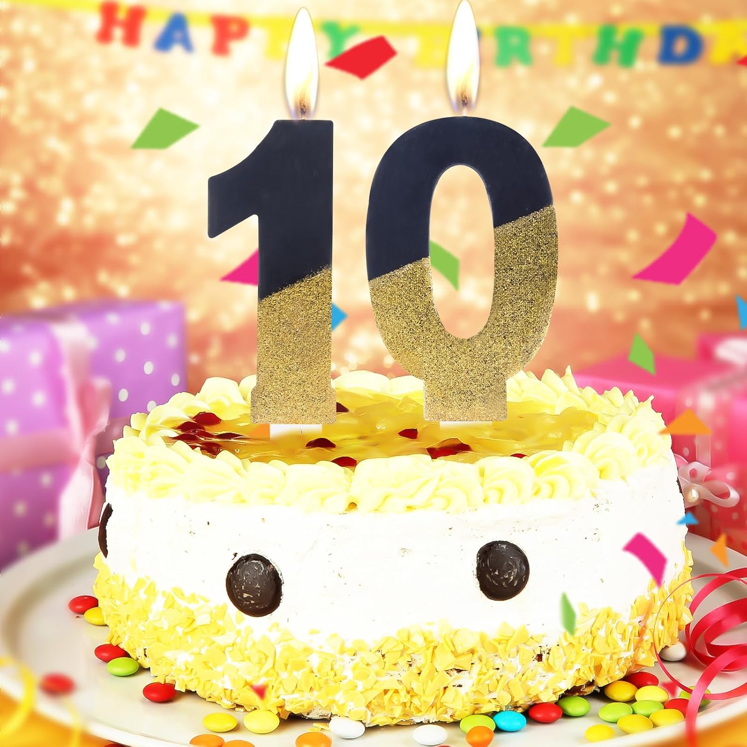 Informazioni sulle candele glitterate in oro nero: viene fornita con 1 candela glitterata nera oro numero 4 e 1 candela glitterata nera oro numero 0, lussuose candele per torte. Il numero 40 in oro nero misura circa 5,5 cm di lunghezza, la lunghezza totale (incluso il plettro per candele) è di circa 11,5 cm, dimensioni adeguate come decorazione per torta per la maggior parte delle torte di compleanno e nuziali. Numero 40 candele per materiale sicuro per torte: le nostre candele di compleanno in oro nero brillante sono realizzate con materiali ecologici, sicure e inodori, adatte per torte di compleanno di qualsiasi dimensione o per qualsiasi celebrazione come feste di compleanno, anniversari, feste a tema, ecc., candele ideali per torte di compleanno, candele di buon compleanno, candele di compleanno numero Candele glitterate per torte: le nostre candele di compleanno in oro nero hanno un rivestimento in oro nero e glitter scintillanti, adatte a persone di qualsiasi età e sesso. Le candele per torta di compleanno in oro nero sono ben confezionate, impediscono efficacemente che la candela venga schiacciata, in grado di soddisfare le vostre esigenze di festa di compleanno. Decorazioni per il primo compleanno multiuso: questa candela in oro nero è nei colori oro nero, brillante e brillante al buio. E si abbina facilmente a decorazioni per feste di vari temi e colori. Non è solo per i compleanni dei bambini, ma anche per i compleanni degli adulti. Decorazione ideale per torte per molte occasioni, come compleanni di ragazzi e ragazze, baby shower, anniversari, feste di pensionamento, riunioni di famiglia, matrimoni, feste hawaiane, persino Natale, oggetti indispensabili per torte per feste Aspetto delicato: le candele per torta per il 40° compleanno in oro nero brillante sono significative per festeggiare il tuo compleanno e una bella decorazione per torta per abbellire torte e cupcake, bagliore luminoso per creare un'atmosfera romantica e aggiungere un tocco di eleganza