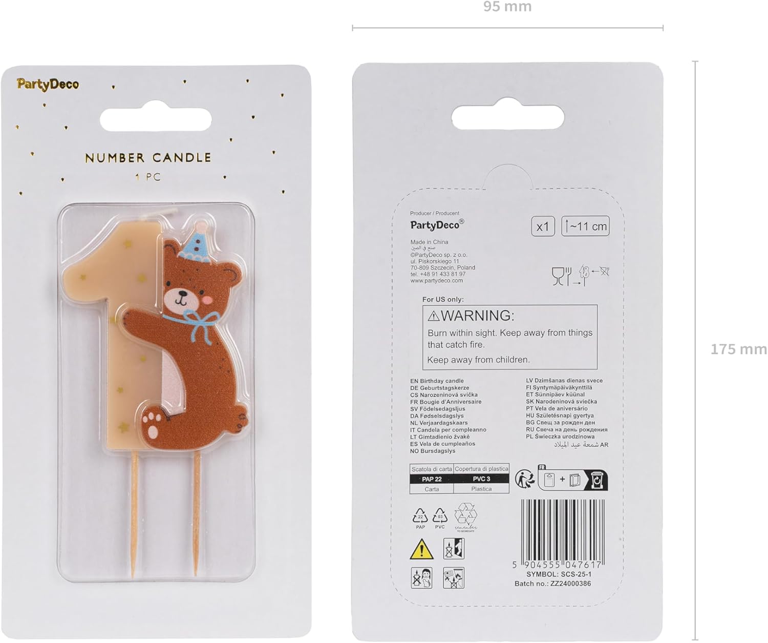 ✔️ Candelina Primo Compleanno con Orsacchiotto ✔️ Materiale: Cera ✔️ Misura: 7 cm altezza ✔️ Componenti: Dotata di due pratici supporti per un'ottima stabilità sulla torta