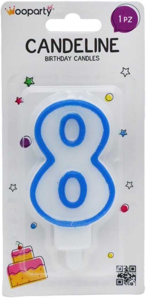 Candelina n.8 azzurro 8.5cm Candelina Wooparty Numero: 8 Colore: bianco/azzurro Dimensione: 8.5cm In cera con supporto in pvc Caratteristiche del materiale:cera Profumo:no Numero di articoli:1 Peso dell'articolo:0.020 Unita di peso dell'articolo:kg Altezza dell'articolo dalla base alla parte superiore:8.5 Unita di misura dell'altezza dell'articolo:cm