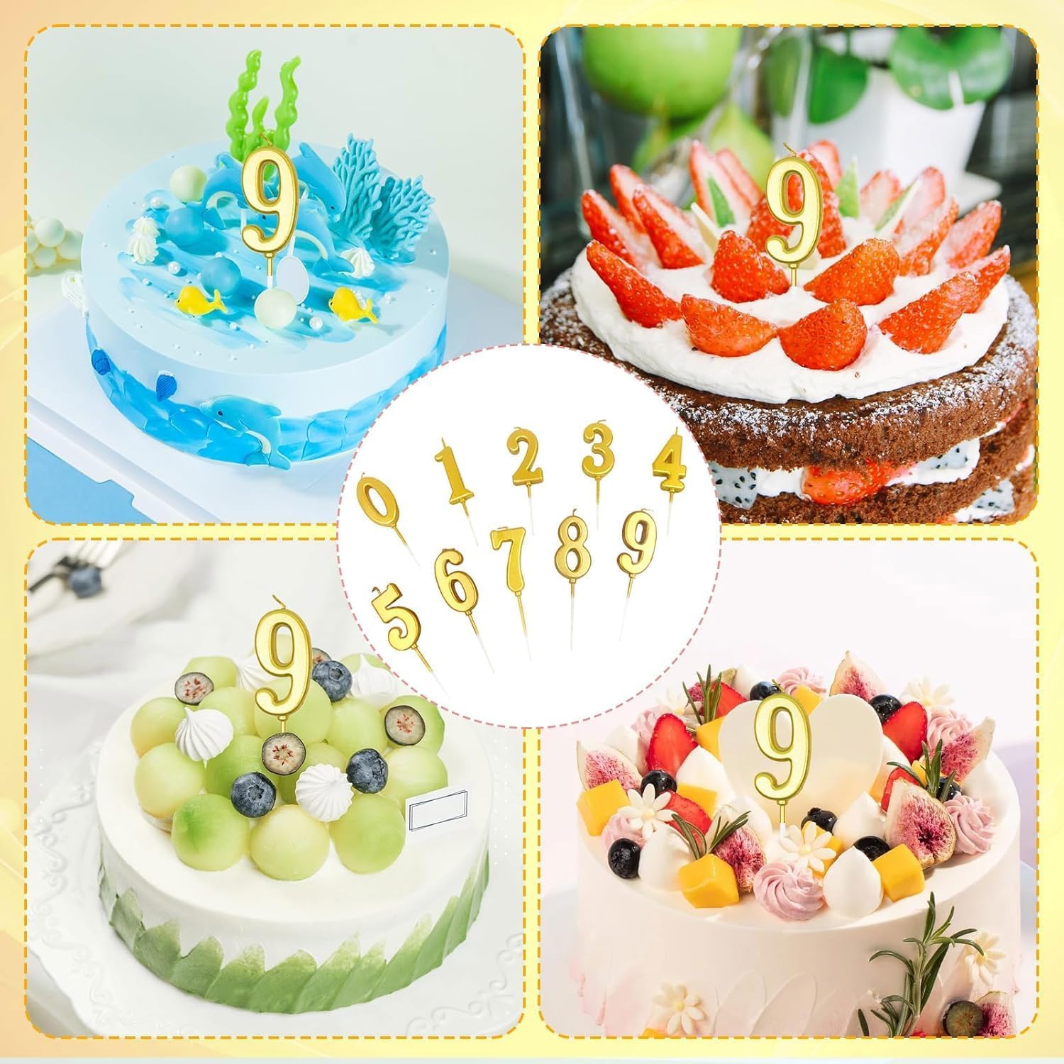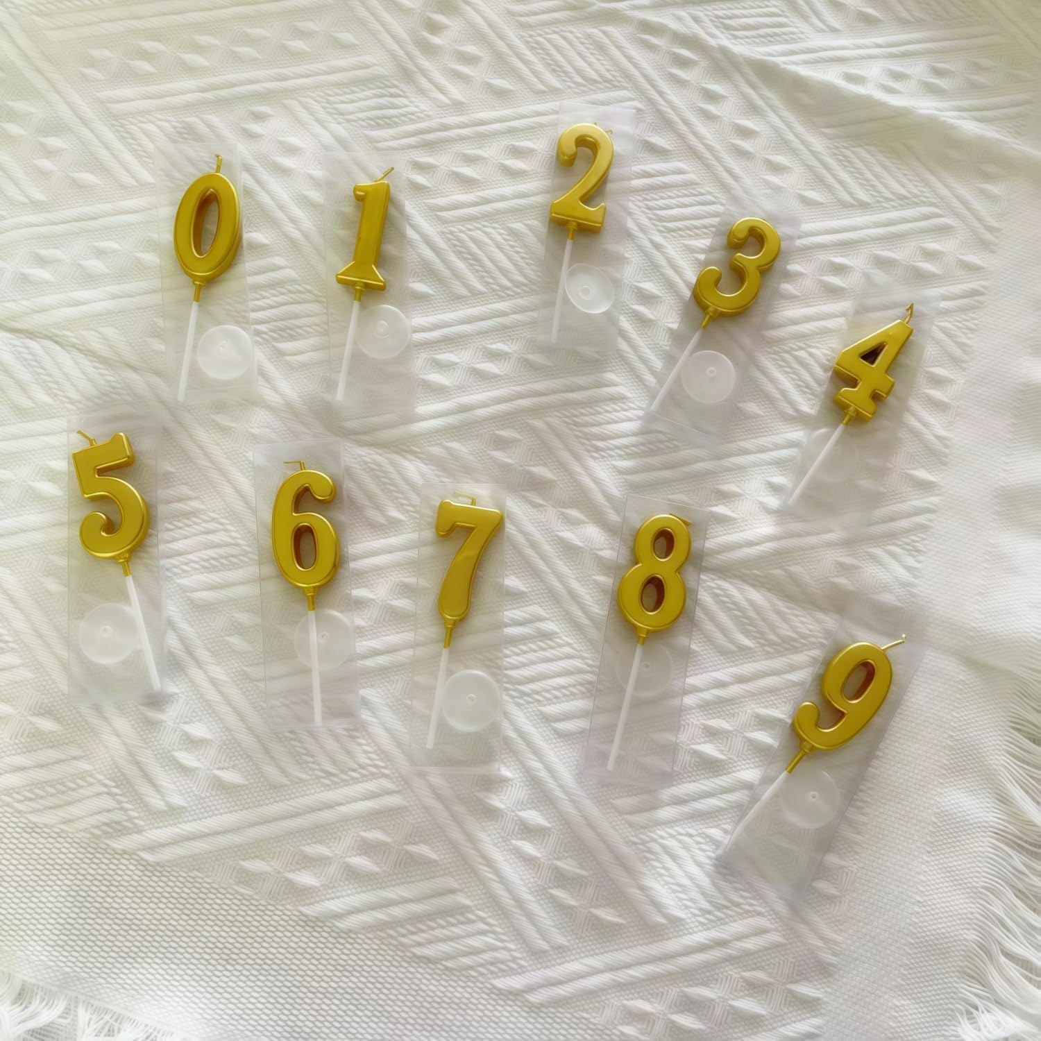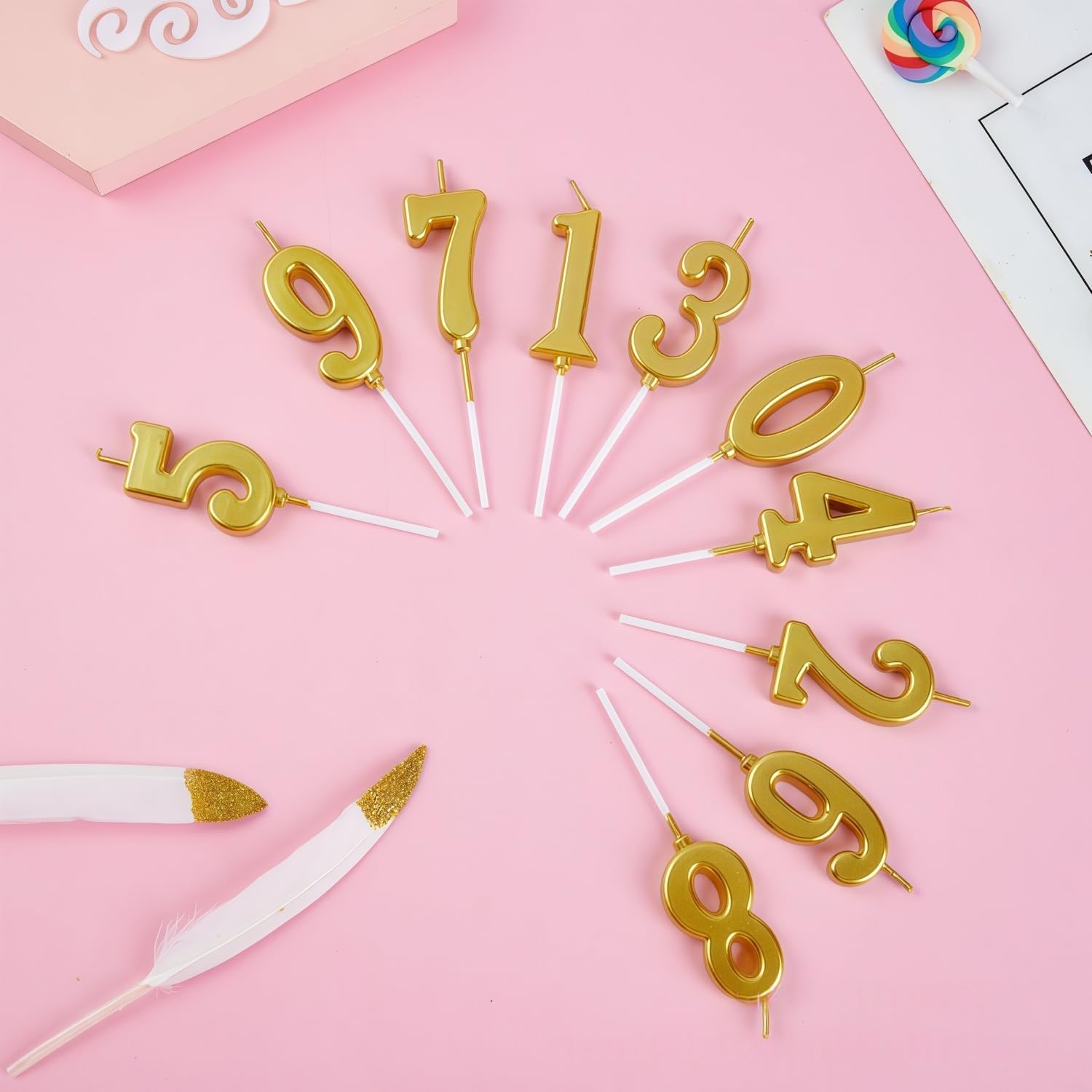 Il pacchetto include: Riceverete 10 pezzi di candele numeriche dorate con i numeri da 0 a 9. Ogni candela numerica è confezionata in modo sicuro in una scatola separata, che può prevenire efficacemente lo schiacciamento della candela e ridurre i danni da trasporto. Materiale: Le nostre candele di compleanno sono realizzate in cera e supporto di plastica. Le candele bruciano in modo uniforme e costante, senza fumo, non tossiche e innocue. Modellazione tridimensionale: Le candele per torta sono caratterizzate da un accattivante colore oro e da una finitura glitter, che scintilla al buio. Creano un'atmosfera romantica e calda. Il vivido effetto di modellazione 3D le fa apparire delicate e adorabili, completando le vostre torte per una migliore presentazione del cibo. Piccoli vassoi separati: Le candele dorate sono lunghe 8 cm e larghe 2,5 cm. Ogni candela viene fornita con un piccolo vassoio per evitare che la candela goccioli sul cibo. Le candele devono essere tenute a una distanza adeguata dalla torta, adatta alla maggior parte delle torte e dei cupcake. Ampia applicazione: Queste candele numeriche per torte sono molto adatte per compleanni di bambini o adulti. Le candele numeriche sono adatte alla maggior parte delle celebrazioni come compleanni, matrimoni, riunioni di ex alunni, anniversari, feste a tema, riunioni di famiglia e creano un'atmosfera calda e momenti indimenticabili.