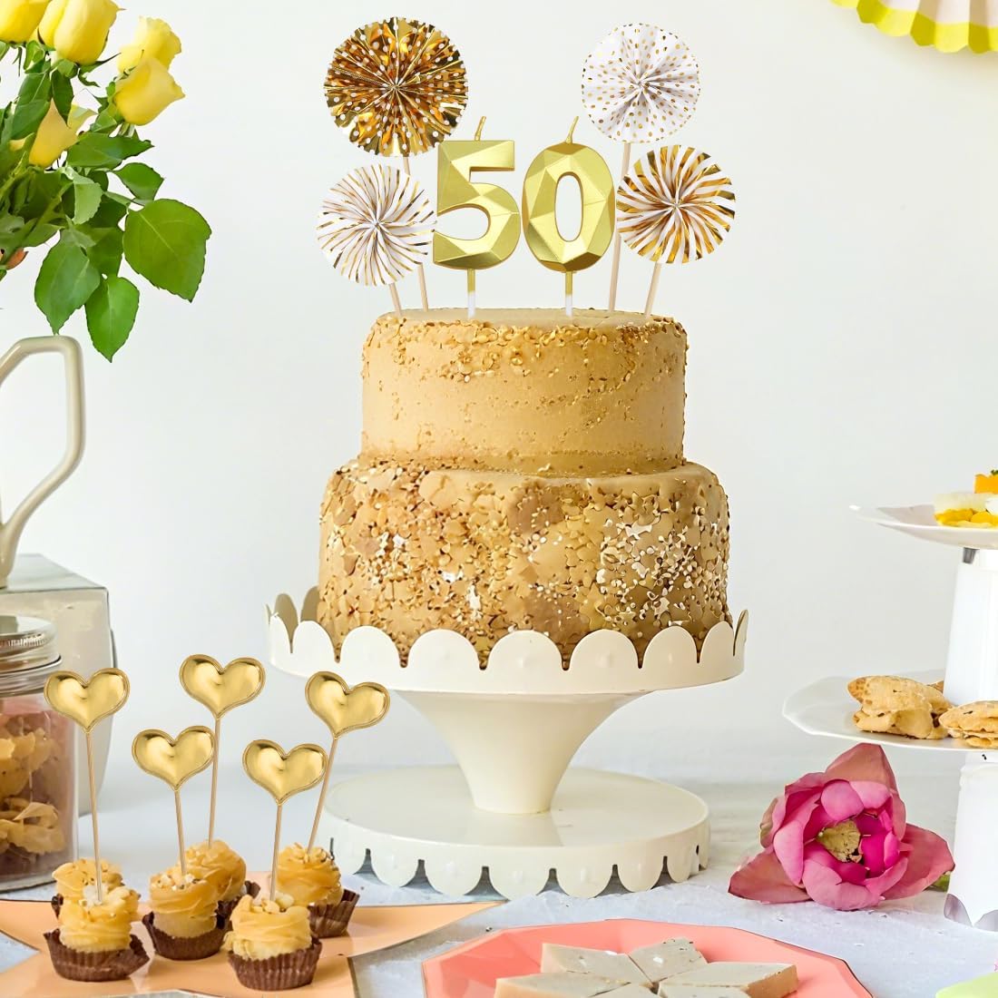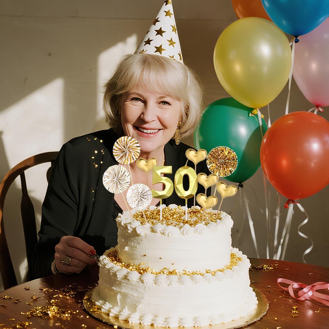 Set di candeline per compleanno: riceverete 2 candeline con i numeri 5 e 0 stampati, 4 fiori di carta e 5 decorazioni a forma di cuore per la torta di compleanno. Le candeline hanno una lunghezza di circa 6 cm e una lunghezza totale di circa 11,5 cm, adatte alla maggior parte delle decorazioni per torte di compleanno o qualsiasi evento celebrativo. Materiali di alta qualità: le nostre 50 candeline di compleanno sono realizzate con materiali ecologici, sicuri, inodori e infiammabili, ideali per decorare torte di compleanno, candeline di buon compleanno e candeline con numeri di compleanno, perfette per feste di compleanno, anniversari, feste a tema e altro ancora. Design unico: queste candeline numerate in stile metallico hanno un design tridimensionale e colori vivaci, aggiungono divertimento alla torta di compleanno e ti accompagnano in un compleanno indimenticabile e significativo. Uso versatile: queste candeline di compleanno sono adatte per decorare torte in diverse occasioni, come feste di compleanno, Pasqua, Halloween, matrimoni, anniversari e Natale, aggiungendo un tocco speciale alla tua torta. Regalo ideale: le candeline decorative personalizzate per torte hanno un design 3D carino e divertente, non solo adatte a torte o cupcake, ma anche come giocattoli o decorazioni. Sono adatte a ragazze, ragazzi, donne e uomini, e sono il regalo perfetto per qualsiasi festa a tema o festa di compleanno.