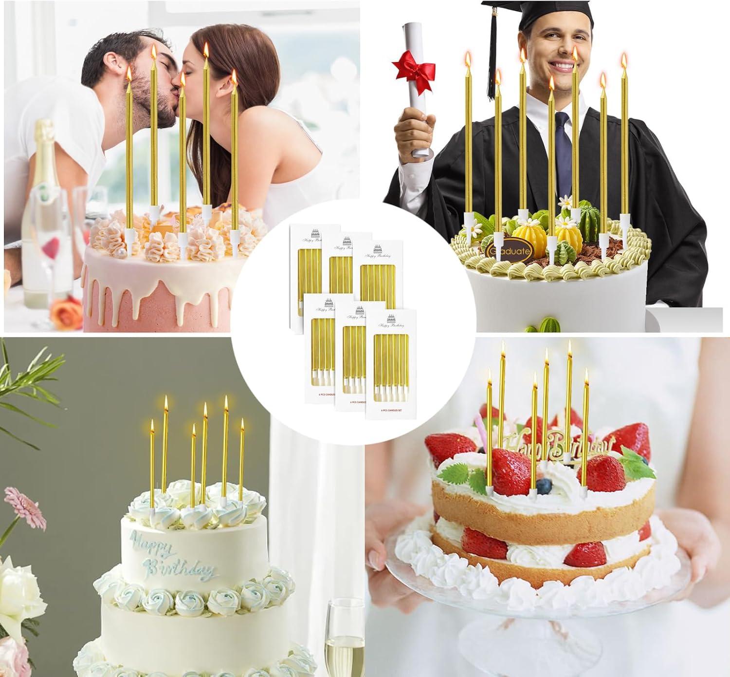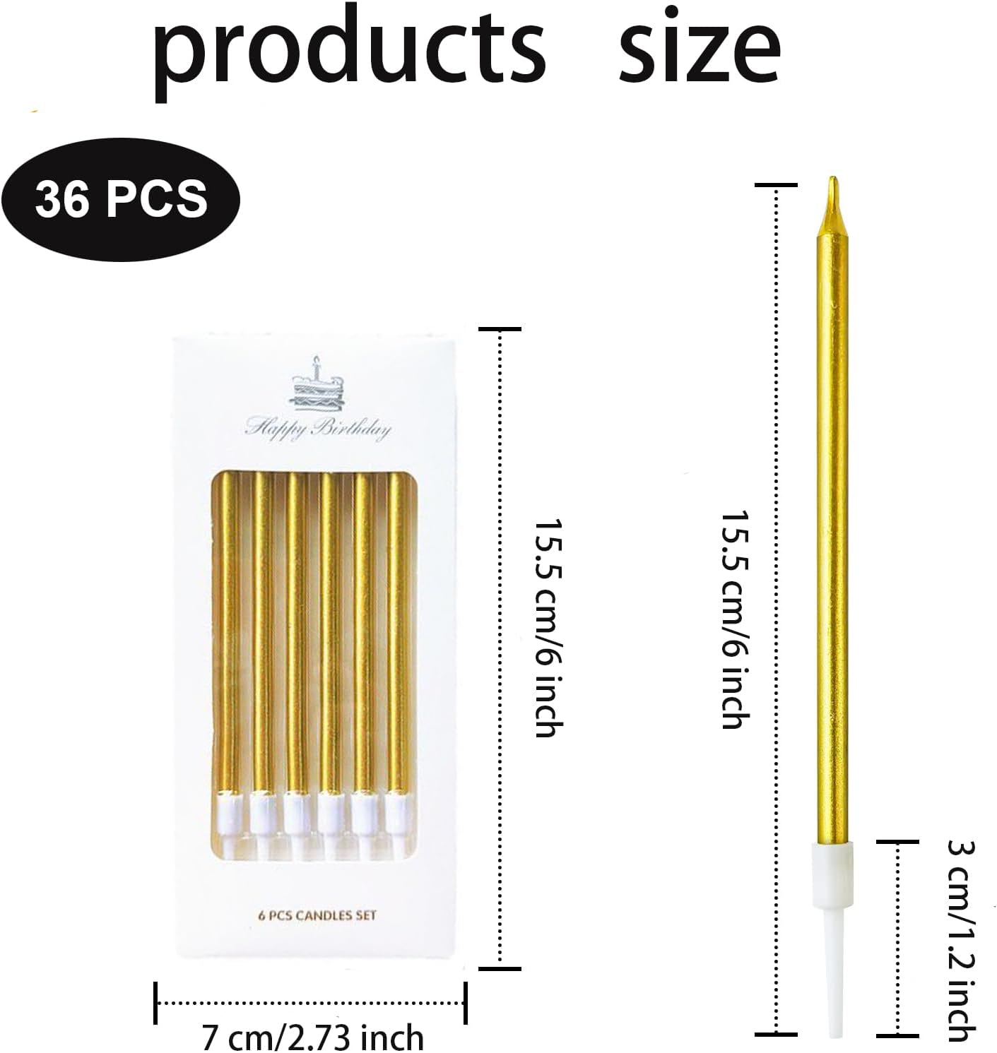 Materiale:le candeline di compleanno sono realizzate in cera di alta qualità,inodore e atossica,sicura per l'uso.Le candeline sottili decorano perfettamente la tua torta. Dimensioni:riceverai 36 candeline di compleanno in 6 scatole,ciascuna contenente 6 pezzi.L'altezza delle candeline di compleanno è di 15,5 cm/6 pollici.Ogni candela è dotata di un supporto che ne garantisce la sicurezza e l'eleganza Stabile grazie alla base:candeline di compleanno per torte dall'aspetto elegante e raffinato con supporto rimovibile.Alla base è presente un coperchio in plastica che impedisce alla cera di gocciolare sulla torta. Facili da usare:queste candeline per torte di compleanno sono facili da inserire e rimuovere,consentendoti di preparare rapidamente le feste.Accessorio perfetto per qualsiasi torta Ampia applicazione:il set di candele lunghe dorate è un ottimo abbellimento per torte o cupcake,adatto per compleanni,matrimoni,baby shower,anniversari,feste di addio al nubilato o celebrazioni festive