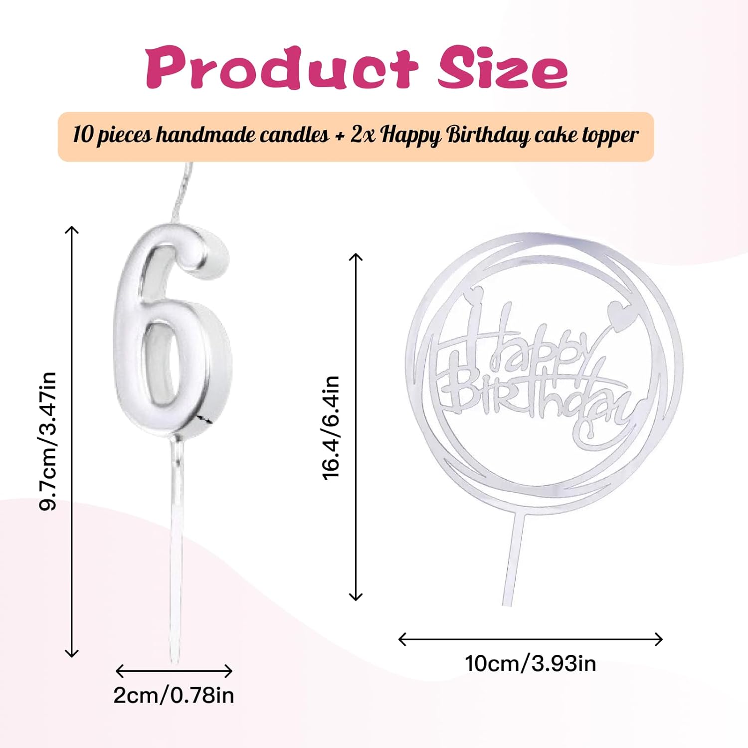 Lotbun Candeline di compleanno in confezione da 12, Numeri da 0 a 9 + Decorazione con scritte di buon compleanno in 2 pezzi, Candeline di compleanno numerate,Candele di compleanno speciali
