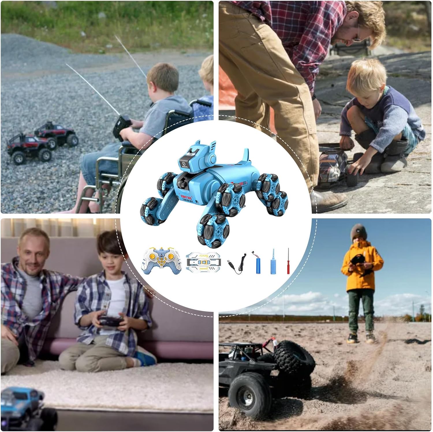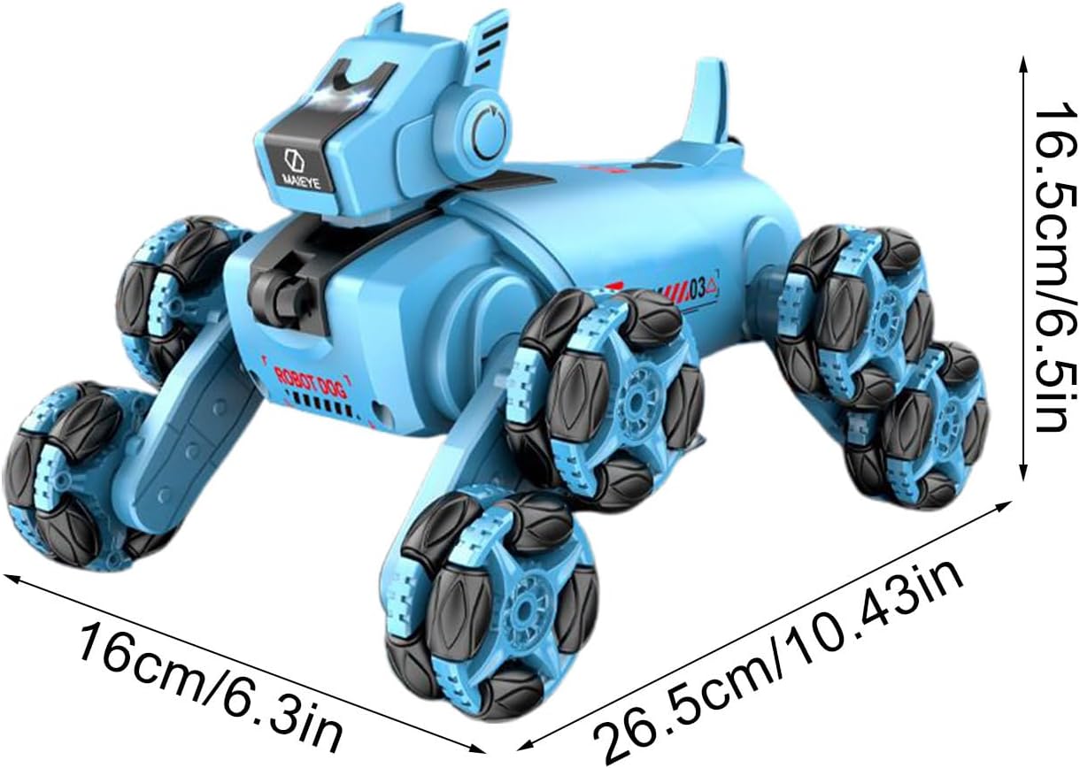 Diversi metodi di controllo: utilizza questo cane robot senza sforzo con il telecomando o l'orologio intuitivo, dotato di rilevamento avanzato dei gesti per un'esperienza diversificata e coinvolgente Rilascia più intrattenimento: goditi ricche funzioni interattive con un su questo cane robot, che vanta luci fantastiche e funzionalità musicali dinamiche per la rotazione della deriva a 360 gradi e acrobazie emozionanti, migliorando il di gioco con ulteriore divertimento Grande versatilità sui terreni: le ruote Mecanum del cane robot, alimentate da un intelligente di trasmissione interna, gli conferiscono la capacità di conquistare facilmente terreni impegnativi con i suoi bracci oscillanti anteriori e posteriori Pronto per giocare: questo cane robot alimentato a batteria ricaricabile da 3,7 V offre un'esperienza di intrattenimento estesa con una comoda ricarica, pronto per ore di divertimento Attivazione semplice: inizia a giocare immediatamente attivando il cane robot tramite l'ombelico e seguendo le istruzioni intuitive. Goditi un facile controllo interno ed esterno con il telecomando