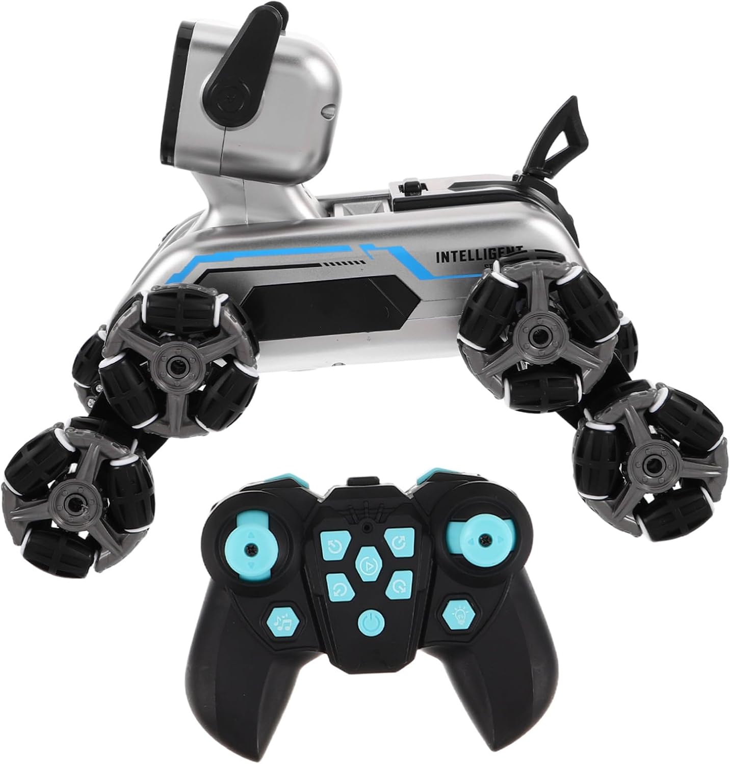 Compagno Bambini: Con giochi interattivi integrati come seguimi, balla e rotola, questo cane robot aiuta i bambini a sviluppare capacità manuali, coordinazione e pensiero logico durante un'interazione giocosa 5. Luci LED per Divertimento: Dotato di un design elegante e futuristico, il cane robot utilizza un'illuminazione LED dinamica per attrarre i giovani utenti, rendendo le interazioni vivaci e piacevoli durante lunghi periodi di gioco. Sensori Intelligenti: Grazie a sensori tattili ad alta precisione, il cane robot riconosce il contatto fisico rispondendo con scodinzolii, cenni del capo ed effetti sonori gioiosi, promuovendo un'interazione più profonda tra utente e dispositivo Gioco Intelligente:Combina controllo remoto ed esplorazione autonoma con rilevamento ostacoli e regolazione automatica del percorso. Esperienze di gioco coinvolgenti e senza sforzo per bambini attraverso comandi intuitivi e navigazione adattiva. Materiali di Qualità: Realizzato con risorse ecologiche sicure per bambini dai 3 anni. Angoli arrotondati assicurano un'esperienza di gioco sicura e favoriscono l'interazione adatta ai più piccoli.