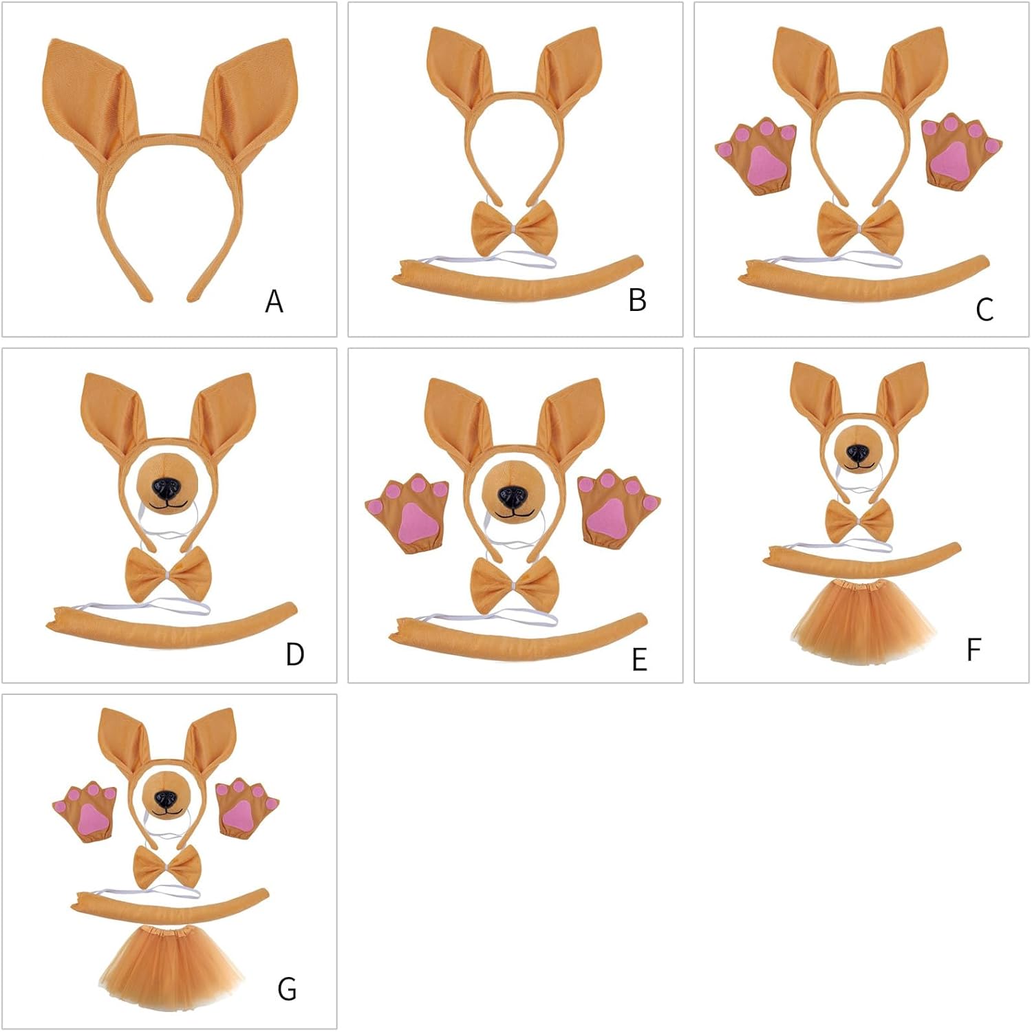 Set di accessori per costume da canguri con orecchie di canguri, fiocchi, naso, guanti e coda di canguri Caratteristiche: Kit costume canguri, 1/3/4/5/6 pezzi. Questo kit di costumi da canguri contiene 1 fascia per orecchie di canguri, 1 gonna, 1 coda di canguri, 1 papillon, 1 naso, 1 paio di guanti, la confezione diversa include cose diverse, canguri vestono accessori per costumi per soddisfare le esigenze dei cosplay dei tuoi bambini. Vestiti rapidamente, questo kit di vestire canguri è molto comodo da indossare e molto facile da indossare e da togliere, ti consente di vestire facilmente e rapidamente il tuo bambino Le taglie si adattano alla maggior parte dei caschi, orecchie di canguro, coda di canguri, papillon sono taglie, bambini a piccoli adulti. Simpatici kit di costumi da canguri, questi accessori per costumi da canguri sono belli per feste in maschera, Halloween, Natale, feste a tema di compleanno, spettacoli scolastici, cosplay, portano al tuo bambino un look bello e attraente. Comodo da indossare, il set di costumi da canguri è realizzato in tessuto, è delicato sulla pelle e comodo da indossare, offre al tuo bambino una bella esperienza di utilizzo. Specifiche tecniche: tessuto. Nastro 1 2 03 4 5 6 7 La confezione include: 1/3/4/5/6 pezzi di accessori per cosplay di animali. Nota: Considerare un margine di errore di 1-2 cm dovuto alla misurazione manuale. A causa delle differenze tra i diversi monitor, l'immagine potrebbe non rispecchiare il colore reale dell'articolo.