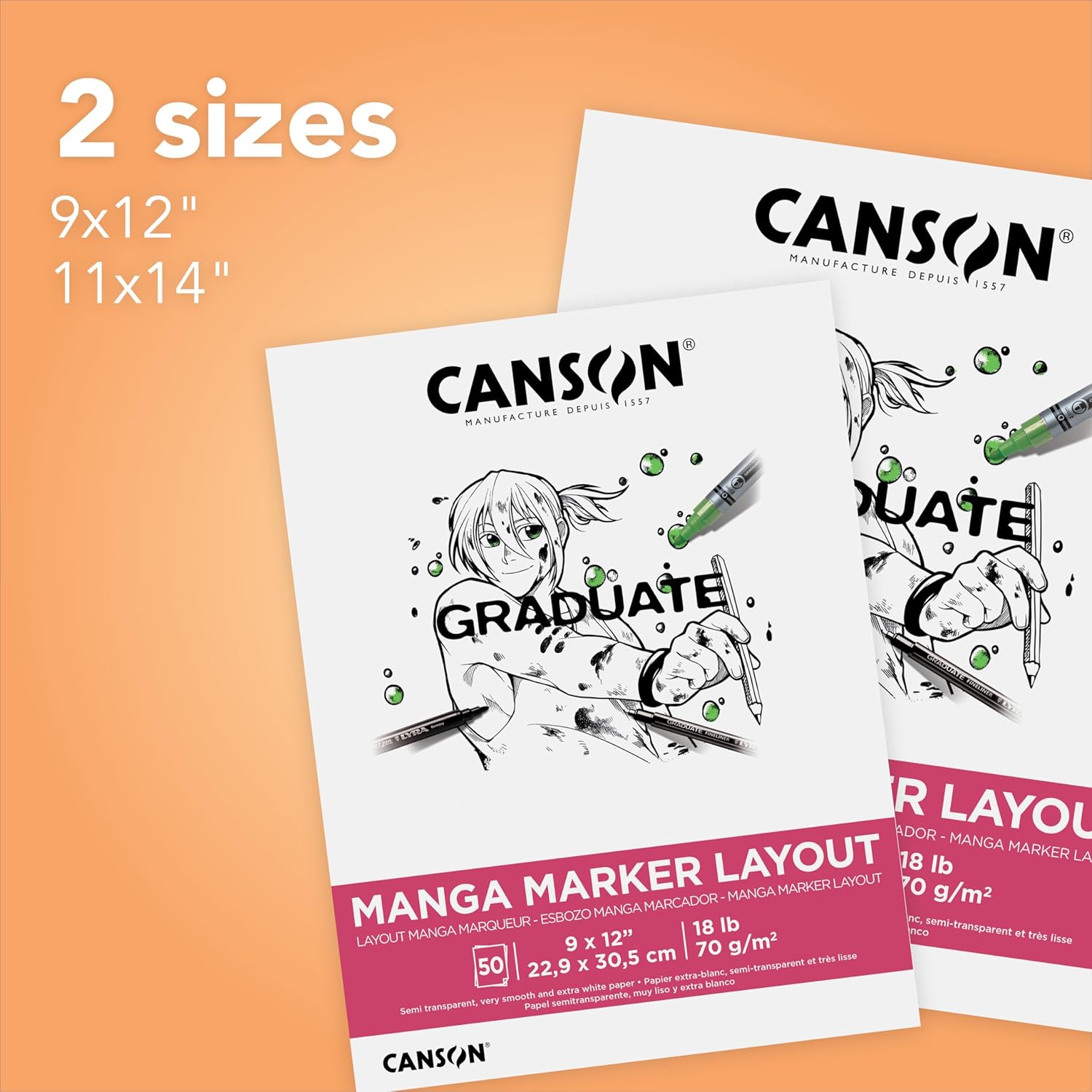 Ultra bianco ed estremamente liscio | Disponi le tue illustrazioni Manga con sicurezza utilizzando questa carta semi-traslucida Perfetto per gli studenti: pratica i tuoi stili di personaggio, espressioni facciali, guardaroba, pelli, capelli e accessori Rimuovere facilmente i fogli: non c'è bisogno di preoccuparsi di errori che strappano pagine perforate grazie alla rilegatura a colla. Basta tirare fuori la pagina! Penna, inchiostro e pennarello: da utilizzare con pennarelli a base di solvente, pennarelli a spirito, penne a pennello, pennarelli a pennello e pennarelli a base d'acqua CANSON — Lascia che la tua creatività prenda il volo! Dal 1557, i nostri artigiani nel sud della Francia sostengono l'immaginazione degli artisti ovunque.