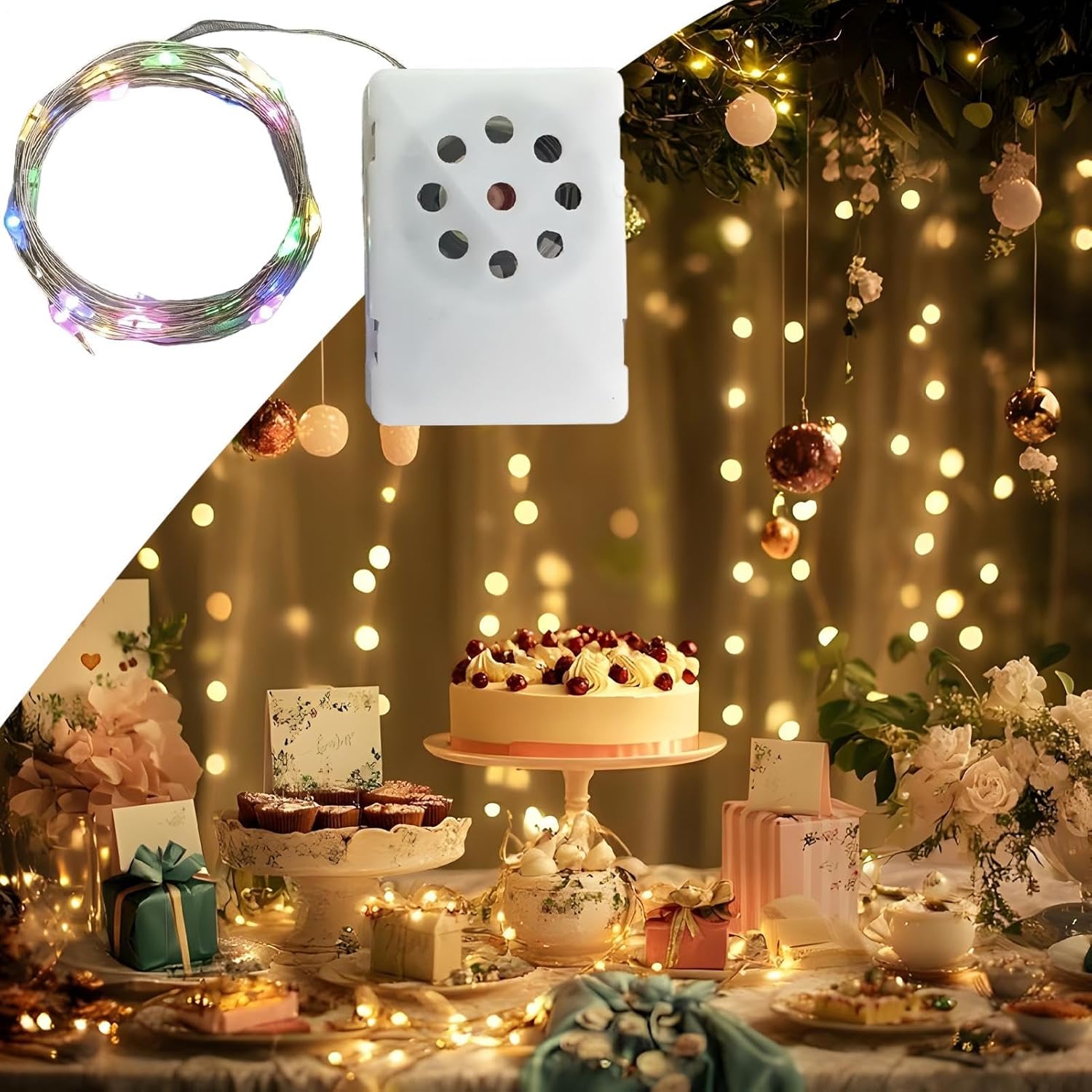LED Morbidi e Flessibili: Emissione luminosa calda e uniforme senza abbagliamenti. Si adattano a qualsiasi composizione creativa grazie alla struttura regolabile che garantisce un effetto visivo magico Adatto a Ogni Festa: Aggiunge un tocco di cerimonia a riunioni familiari e tra amici, armonizzandosi alla perfezione con torte festive e composizioni floreali, rendendo ogni momento insieme speciale e memorabile. Praticità d'uso: Si adatta facilmente a diversi ambienti con installazione semplice e funzionamento intuitivo. Grazie alla batteria a bottone, nessun cablaggio richiesto per utilizzo immediato Decorazione Versatile: Utilizza la scatola musicale con luci a LED brillanti per migliorare l'atmosfera di feste e celebrazioni, aggiungendo gioia come elemento decorativo multifunzione. Esperienza Musicale: Celebra compleanni indimenticabili con melodie incantevoli diffuse dal lettore musicale integrato, completate da luci LED intermittenti che facilmente l'atmosfera di festa.