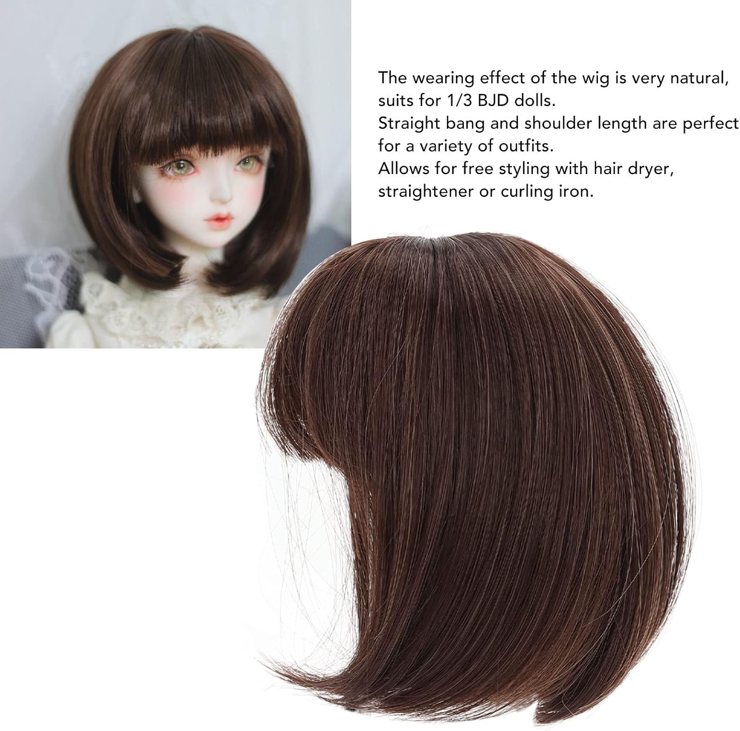 [Divertimento con i giochi di ruolo] Perfetta per bambole con identità diverse, la parrucca bjd aggiunge un elemento di divertimento e intrattenimento alle attività di gioco di ruolo con la tua bambola. [Stile flessibile] Progettata con frangia dritta e lunghezza alle spalle, questa parrucca offre flessibilità nell'abbinare trucco e vestiti per il look unico della tua bambola. [Accessori per bambole fai da te] Adatta per parrucche da bambola 1/3 bjd fai da te, questa parrucca è esclusivamente per bambole e non è destinata all'uso umano. bambola e accessori non inclusi. [Materiale in fibra morbida] Realizzati in fibra ad alta temperatura, i capelli della bambola sono incredibilmente morbidi, consentendo un facile taglio e styling per creare diverse acconciature. [Effetto naturale] La parrucca della bambola presenta una rete interna in 3 pezzi, che fornisce un effetto naturale per la tua bambola, migliorandone l'aspetto realistico.