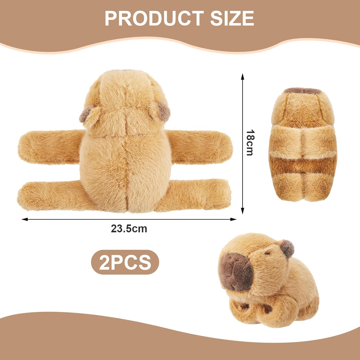【Peluche Capybara Bambola】: Riceverai 2 capybara peluche braccialetti slap. Questi graziosi e divertenti braccialetti non sono solo alla moda, ma puoi anche avvolgerli intorno al polso o ad altri oggetti che si adattano alla tua presa. Si indossano e si tolgono facilmente con un semplice clic 【Divertimento Interattivo】: Questi capybara braccialetti slap di peluche sono un modo divertente e interattivo per i bambini di indossare il loro animale preferito al polso. Possono anche essere utilizzati come strumento didattico per conoscere gli animali e i loro habitat, promuovendo il gioco educativo 【Materiale Morbido】: Nostri capibara peluche sono realizzati con materiali morbidi e di qualità, comodi da indossare e delicati sulla pelle, facili da pulire e lavare, comodi per l'uso quotidiano. Il design di questo braccialetto schiaffeggiante è ispirato al simpatico capibara, con un aspetto realistico e interessante 【Peluche Creativo a Forma di Capibara】: Il peluche capibara è progettato con piastre in acciaio al silicio sugli arti. Basta un leggero tocco sul polso e il delfino acquatico si appoggerà automaticamente saldamente sulla mano, rendendolo un regalo unico e creativo per gli amanti dei delfini acquatici 【Regalo Squisito】: Nostri braccialetti schiaffeggianti capibara sono ideali per ogni occasione, che si tratti di un regalo di Natale, una festa di compleanno, un evento scolastico o semplicemente un appuntamento di gioco, premi in classe, sono perfetti come bomboniere. Per qualsiasi domanda sui nostri capibara peluche, non esitate a contattarci 【Adatto Alla Maggior Parte delle Persone】: Capybara peluche è solo un normale braccialetto schiaffeggiante a forma di animale, ma anche un braccialetto schiaffeggiante a forma di amico dei libri per decorare il tuo zaino o i tuoi libri. Adatto a bambini di tutte le età, il tuo bambino si divertirà ad abbracciare e giocare con il suo amico capibara per un'intera giornata.
