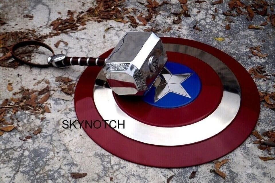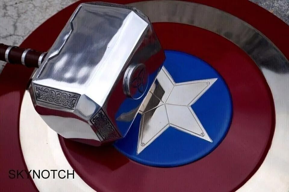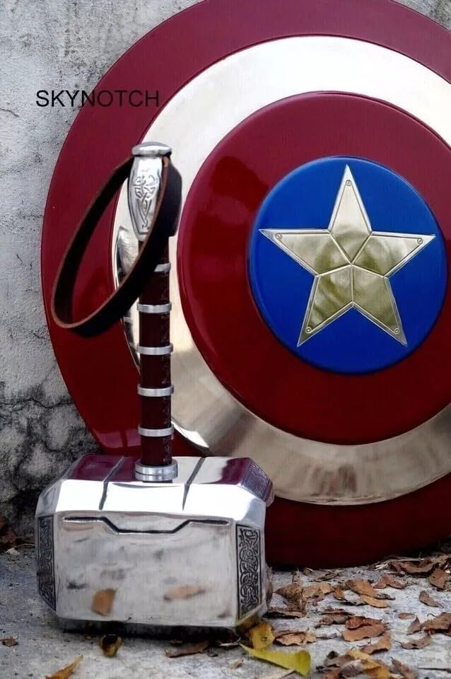 Dimensioni: 55,9 cm Dimensioni: martello Thor Dimensioni: 40,6 x 14 x 22,1 cm - Peso: 2,5 kg - Finitura: come da immagine - Scudo di ottima qualità e ben fatto - Metallo: ferro, acciaio e cinturini in pelle. Uso: utilizzabile tutti i giorni, unisex, ideale come regalo Imballaggio: confezione singola. Imballaggio ondulato dell'esportazione