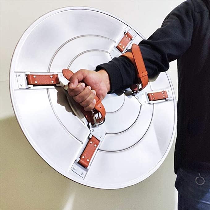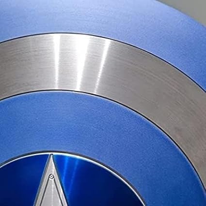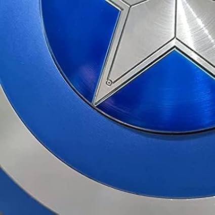 Materiale: metallo, cinghie in acciaio. Colore: argento e blu. Design: scudo a 5 stelle Costruzione durevole: realizzato con materiali di alta qualità, questo scudo è progettato per resistere agli urti e all'usura per un uso duraturo. Design dettagliato: lo scudo presenta dettagli intricati e il distintivo emblema della stella, catturando l'essenza dell'originale. Dimensioni: misura 56 cm di diametro, questo scudo è un pezzo di visualizzazione considerevole e impressionante. Display versatile: sia montato su una parete o esposto su un supporto, questo scudo è una straordinaria collezione aggiuntiva.