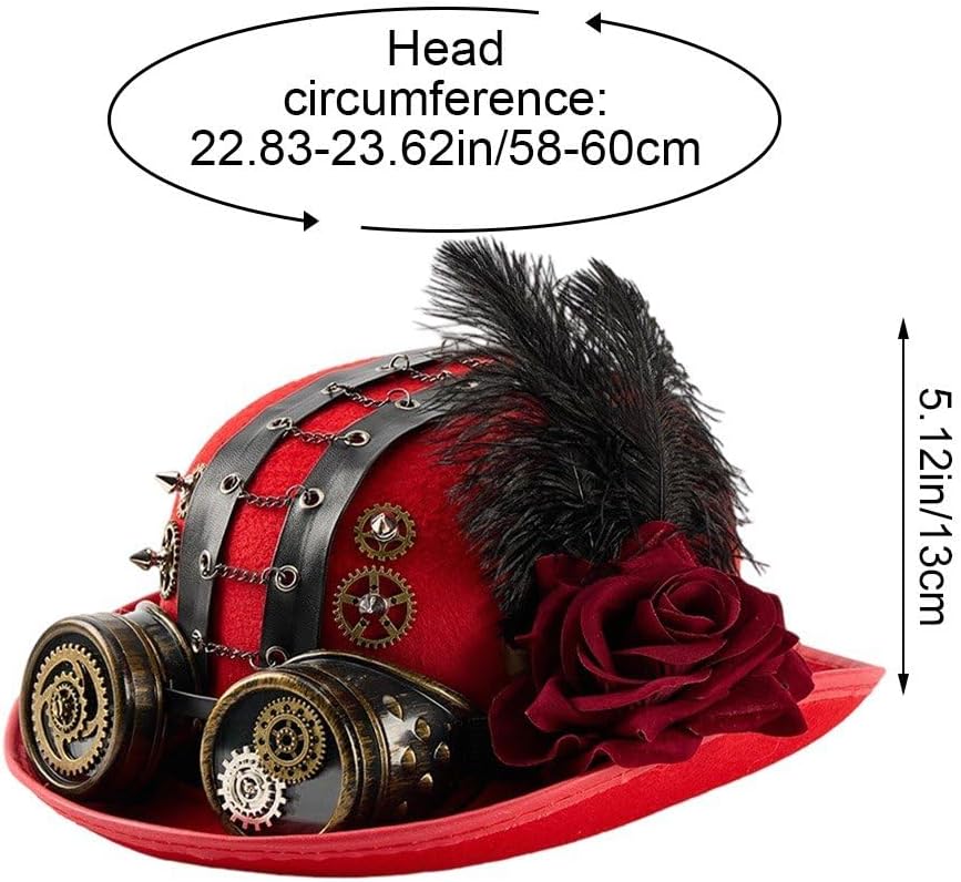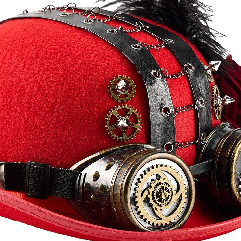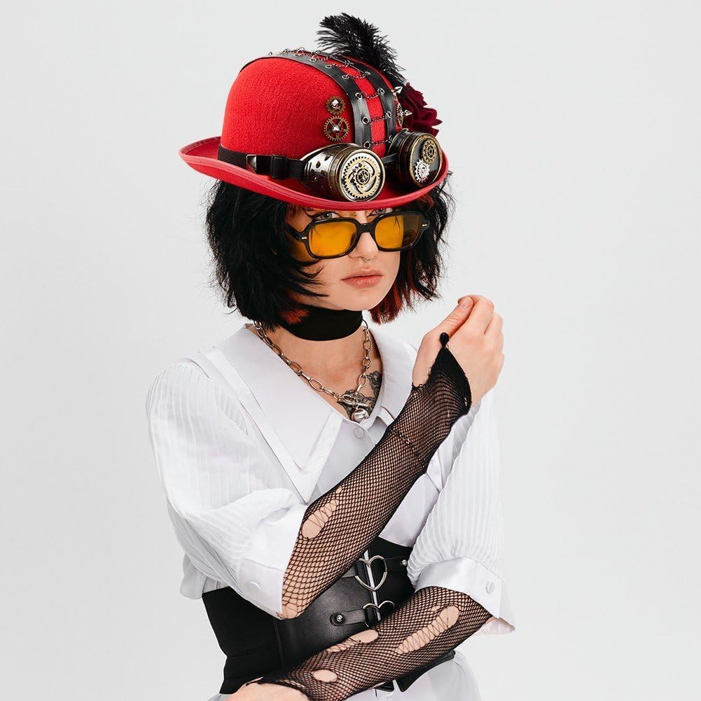 Rendi ancora più esclusivi i tuoi costumi di Halloween, le feste in maschera o gli eventi a tema vittoriano con questo cappello traspirante con occhiali protettivi, per esperienze di gioco di ruolo immersive. Il cappello Steampunk artigianale combina dettagli vittoriani a catena con occhiali rosa scuro, regolabili per vari eventi cosplay o per l'uso quotidiano. Perfetto per gli appassionati di cosplay, gli artisti teatrali e gli amanti della moda vintage in cerca di accessori per convention, servizi fotografici o streetwear steampunk. Realizzato in lana con cuciture rinforzate, questo cappello unisex vanta una circonferenza della testa di 58-60 cm e decorazioni con ingranaggi metallici in stile industriale, per un uso duraturo durante le feste a tema. Decorazione a catena staccabile e struttura resistente agli urti garantiscono una facile conservazione, mantenendo contempo sua eleganza gotica anche se indossato a lungo durante sfilate o eventi a tema.