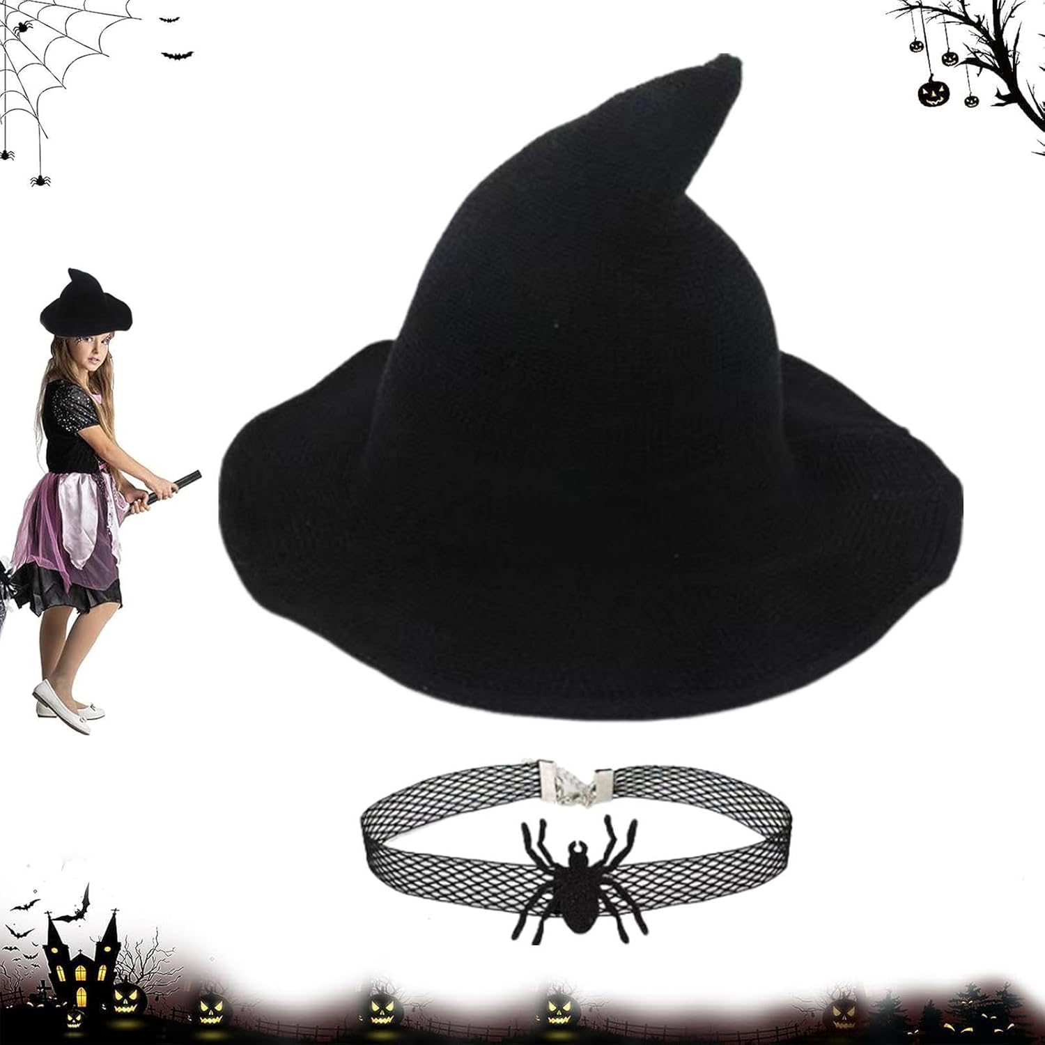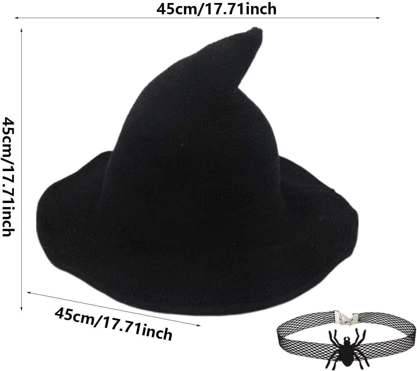 Descrizione prodotto eleganti cappelli da strega per le donne non sono solo alla moda, ma anche comodi e facili da indossare. Perfetto per adolescenti e ideale per regali di compleanno. Questi cappelli sono ampiamente applicabili e completeranno qualsiasi set spaventoso. Specifica: Nome del prodotto: cappello da strega di Halloween. Dimensioni del prodotto: circa 45 x 45 x 4 5 cm. Materiale: tessuto Stile: berretto lavorato a maglia nero + ragno/cappello ragno con volanti/set Applicazione: Halloween Contenuto della confezione: 1 cappello da strega di Halloween. Nota: 1. A causa dei diversi effetti di visualizzazione e illuminazione, il colore reale del prodotto potrebbe essere leggermente diverso dal colore mostrato nell'immagine. Grazie! 2. A causa della misurazione manuale, potrebbe esserci una differenza di 1-3 cm. Avviso di sicurezza Non applicabile