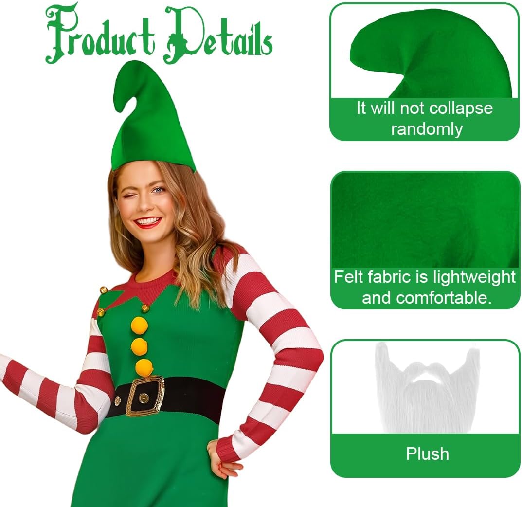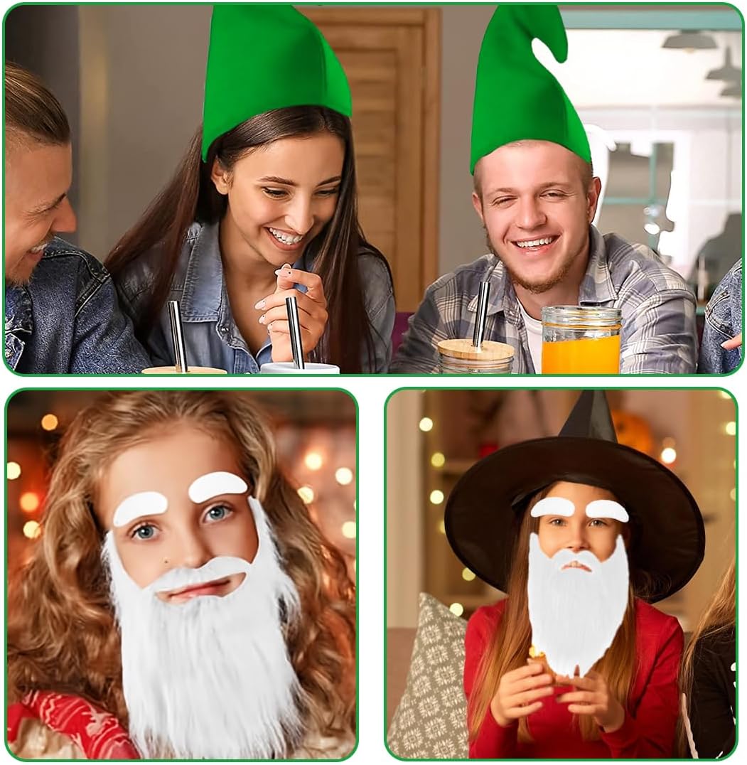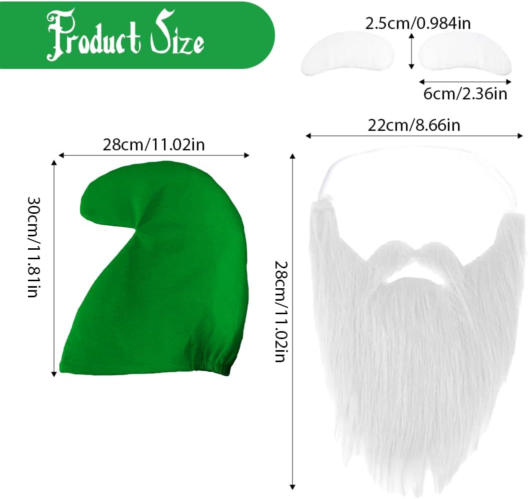 Design accattivante: il classico cappello verde da gnomo abbinato a baffi e sopracciglia bianchi in peluche conferisce un aspetto molto realistico, creando senza sforzo un look da gnomo adorabile e giocoso che diventa immediatamente il centro dell'attenzione. Materiale confortevole: realizzato in tessuto di feltro leggero, il cappello è leggero e comodo da indossare; i baffi e le sopracciglia in peluche sono morbidi sulla pelle, garantendo comfort anche durante un uso prolungato. Vestibilità versatile: adatto a tutte le età, bambini e adulti possono utilizzarlo per aggiungere allegria alle feste e alle celebrazioni, divertendosi a travestirsi. Scenari versatili: perfetto per decorazioni festive, feste, Halloween, compleanni e altro ancora, conferisce un'atmosfera stagionale o a tema distintiva agli eventi, migliorandone il divertimento. Forma resistente: la struttura robusta del cappello resiste al collasso, mantenendo la sua forma per un effetto costume duraturo senza frequenti regolazioni.