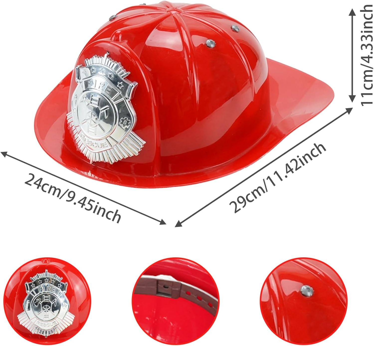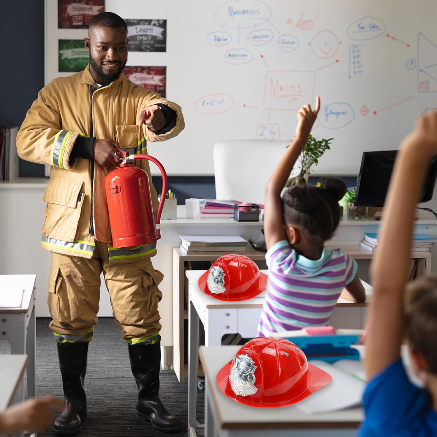 Accessorio perfetto per il costume da pompiere: questi cappelli da pompiere per bambini sono accessori ideali per feste di Halloween, giochi di ruolo, spettacoli teatrali e altro ancora..Completano qualsiasi costume da pompiere, permettendo ai bambini di immergersi completamente nel ruolo e di potenziare il loro gioco fantasioso. Simulazione e realistico: questi cappelli da pompiere per bambini sono finemente realizzati con un design realistico, completo di emblema del pompiere sul davanti..Forniscono un'esperienza coinvolgente per i bambini, consentendo loro di saperne di più sui vigili del fuoco e sul loro importante ruolo nella società. Materiale di qualità: realizzati in plastica atossica, questi cappelli da pompiere per bambini sono sicuri per far giocare i bambini..Sono inodori, non irritanti per il cuoio capelluto e costruiti per resistere a giochi violenti, garantendo che i bambini possano divertirsi senza preoccupazioni. Ottima fattura e comodo da indossare: i cappelli da pompiere per bambini sono dotati di un fissaggio con rivetto su entrambi i lati per il rivestimento interno, che lo tiene saldamente in posizione..Ciò garantisce una vestibilità morbida e confortevole senza alcun disagio, shock o irritazione. Dimensioni adatte e fodera regolabile: con una dimensione di circa 29x24x11 cm/11,42x9,45x4,33 pollici, questi cappelli da pompiere per bambini sono progettati con una fodera regolabile per garantire una vestibilità aderente e confortevole per i bambini con una circonferenza della testa fino a 50 cm..La fodera regolabile consente una vestibilità sicura e personalizzata.