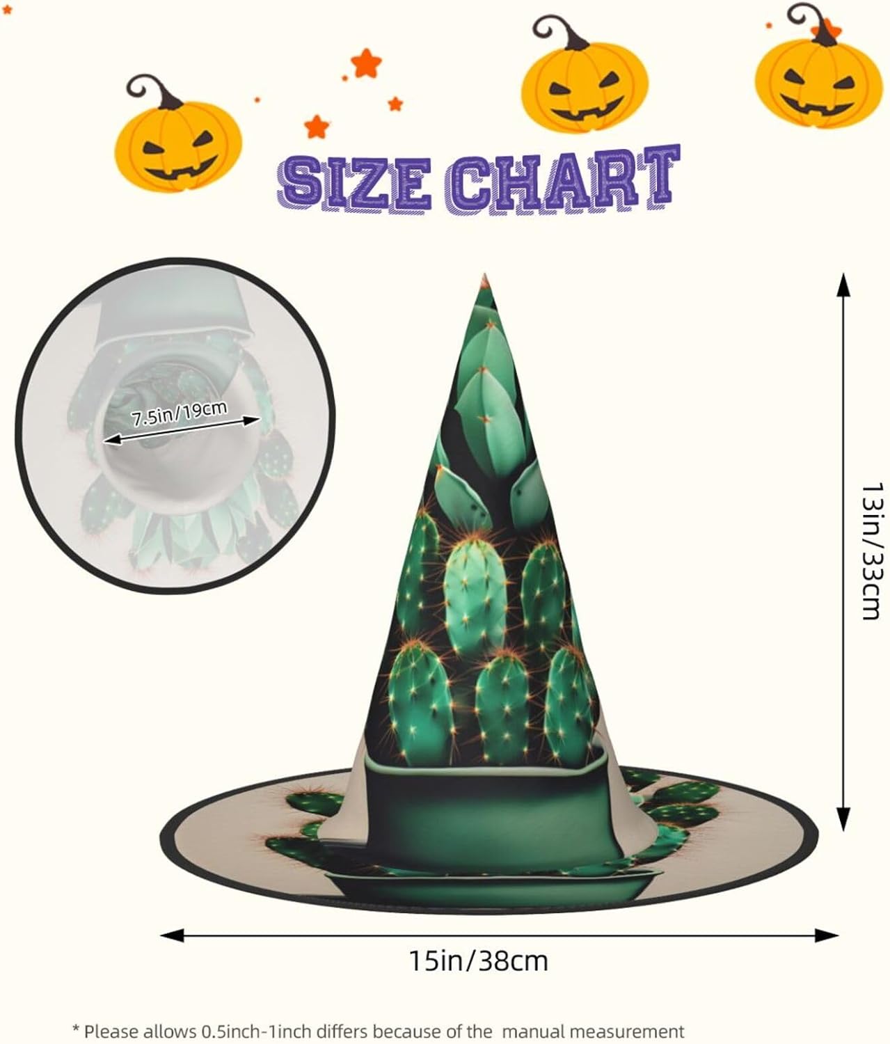 Realizzati in tessuto confortevole, morbido e Oxford, questi cappelli con stampa artistica di cactus sono ideali per Halloween e feste in costume. Il design unico e leggero consente di piegare e torcere le falde del cappello, offrendo una facile conservazione e portabilità. Con una dimensione che si adatta alla maggior parte, questi cappelli di Halloween con stampa artistica di cactus per uomini e donne sono ideali per carnevale, balli in maschera ed eventi di ruolo. Diventa il centro dell'attenzione in qualsiasi riunione! Inoltre, i nostri cappelli da strega sono facili da pulire: lavare a mano o in lavatrice, asciugare rapidamente e non richiedono candeggina. Festeggia Halloween con stile con i nostri cappelli da strega con stampa artistica cactus!