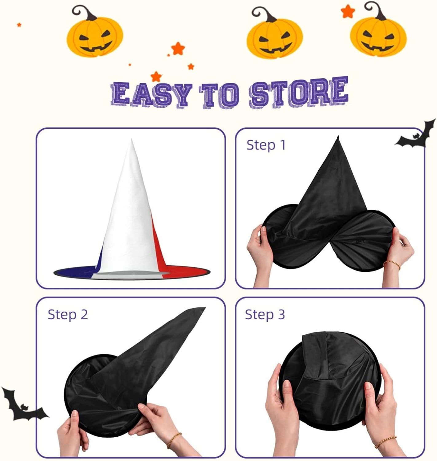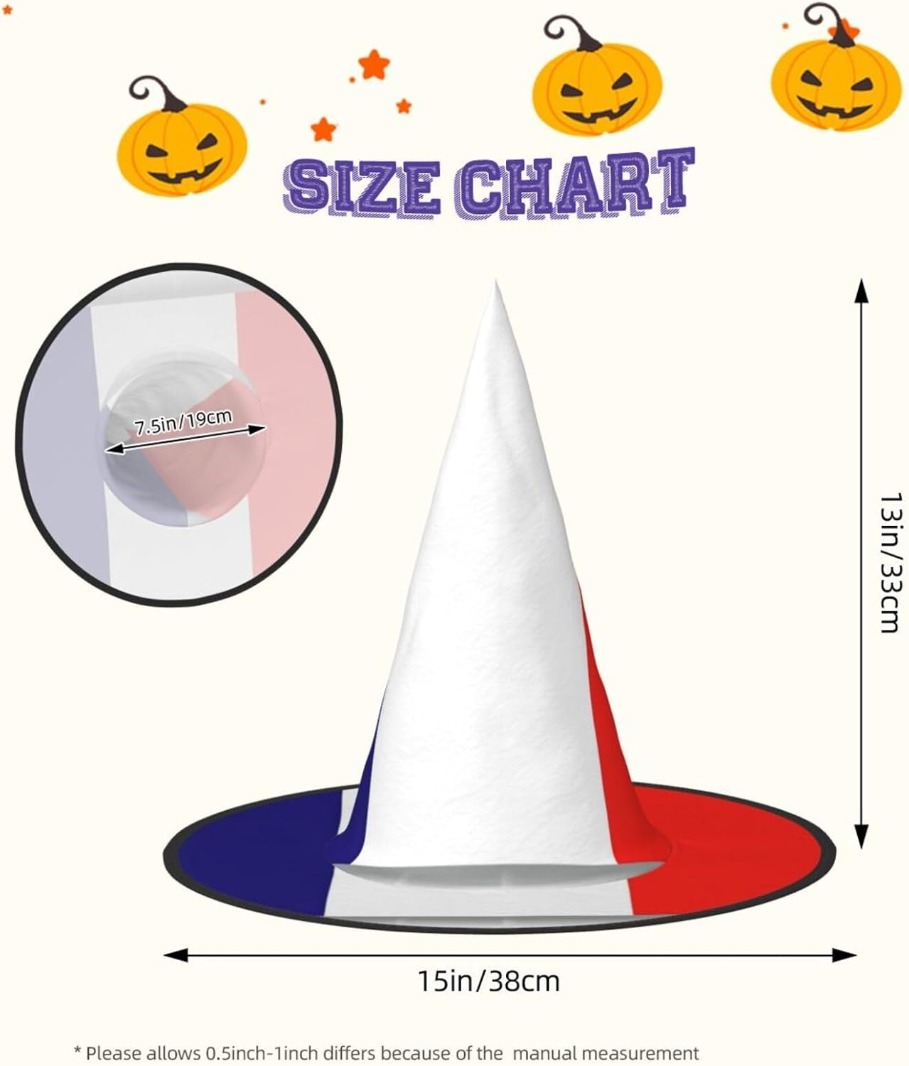 Realizzati in comodo tessuto Oxford, questi cappelli con stampa bandiera francese promettono una vestibilità aderente e un uso duraturo. Con un design unico, questi cappelli con stampa bandiera francese possono essere serrati, attorcigliati e piegati secondo le tue esigenze, aggiungendo un pizzico di stile e convenienza al tuo enssemble di Halloween. Progettati per adattarsi alla maggior parte delle persone, questi cappelli con stampa bandiera francese sono facili da trasportare per feste di Halloween, carnevale, feste in maschera ed eventi cosplay. Essendo lavabili in lavatrice e a mano, questi cappelli richiedono una cura minima. Evitare l'uso di candeggina per il lavaggio.