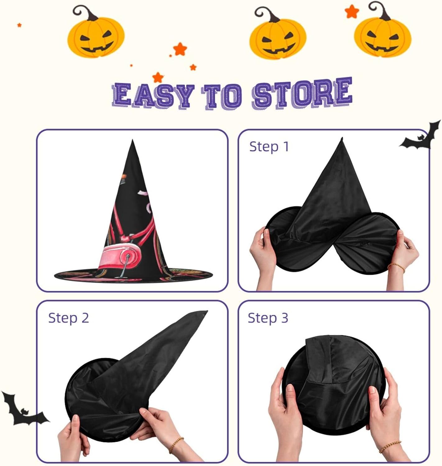 Realizzati in comodo tessuto Oxford, questi cappelli con stampa bicicletta promettono una vestibilità aderente e un uso duraturo. Con un design unico, questi cappelli con stampa a bicicletta possono essere serrati, attorcigliati e piegati secondo le tue esigenze, aggiungendo un pizzico di stile e convenienza al tuo enssemble di Halloween. Progettati per adattarsi alla maggior parte delle persone, questi cappelli con stampa di biciclette sono facili da trasportare per feste di Halloween, carnevale, feste in maschera ed eventi cosplay. Essendo lavabili in lavatrice e a mano, questi cappelli richiedono una cura minima. Evitare l'uso di candeggina per il lavaggio.