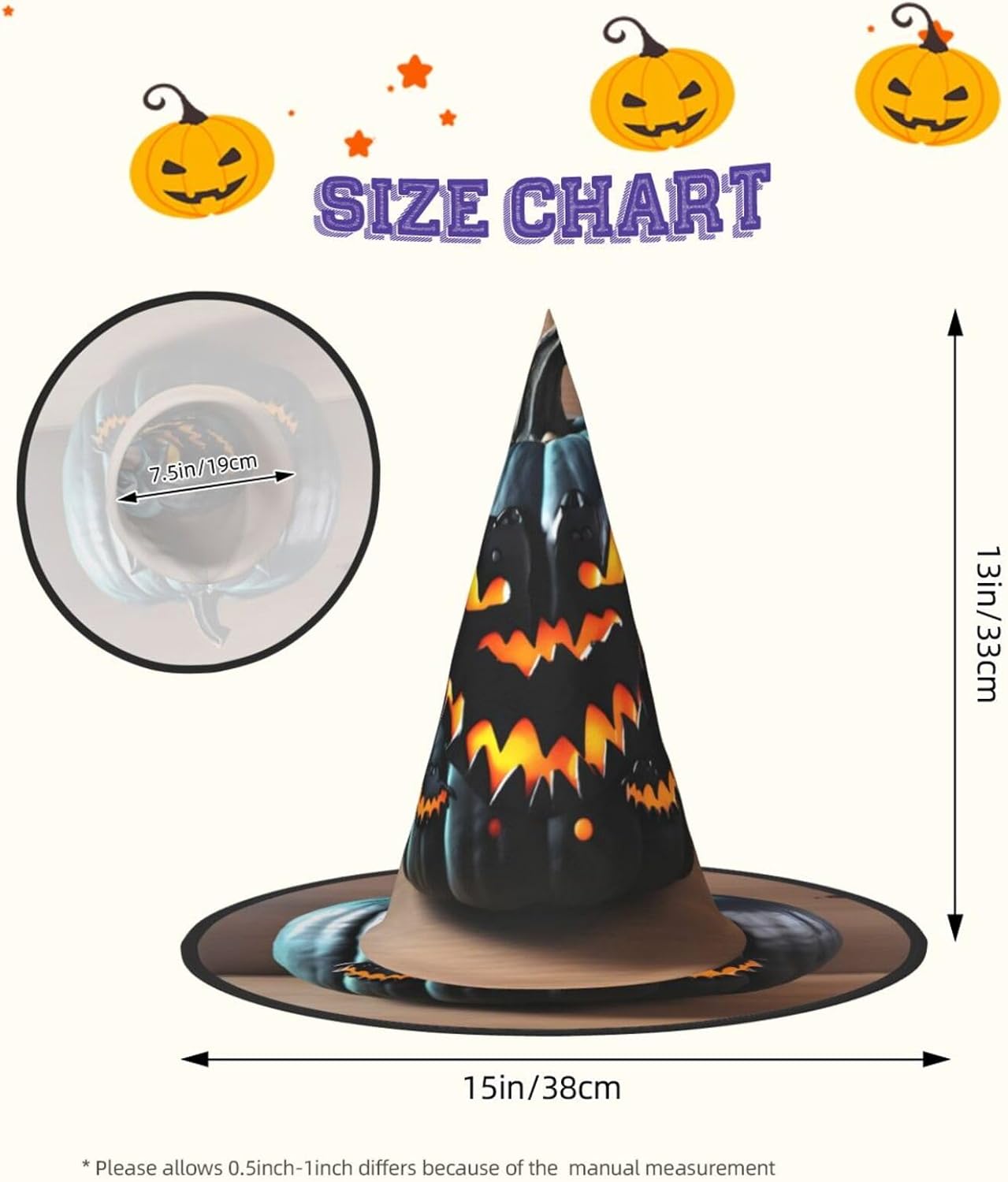 Realizzati in tessuto confortevole, morbido e Oxford, questi cappelli con stampa di zucca di pipistrello di Halloween sono ideali per Halloween e feste in costume. Il design unico e leggero consente di piegare e torcere le falde del cappello, offrendo una facile conservazione e portabilità. Con una dimensione che si adatta alla maggior parte, questi cappelli di Halloween con stampa di zucca di pipistrello di Halloween per uomini e donne sono ideali per carnevale, balli in maschera ed eventi di gioco di ruolo. Diventa il centro dell'attenzione in qualsiasi riunione! Inoltre, i nostri cappelli da strega sono facili da pulire: lavare a mano o in lavatrice, asciugare rapidamente e non richiedono candeggina. Festeggia Halloween con stile con i nostri cappelli da strega con stampa zucca pipistrello di Halloween!