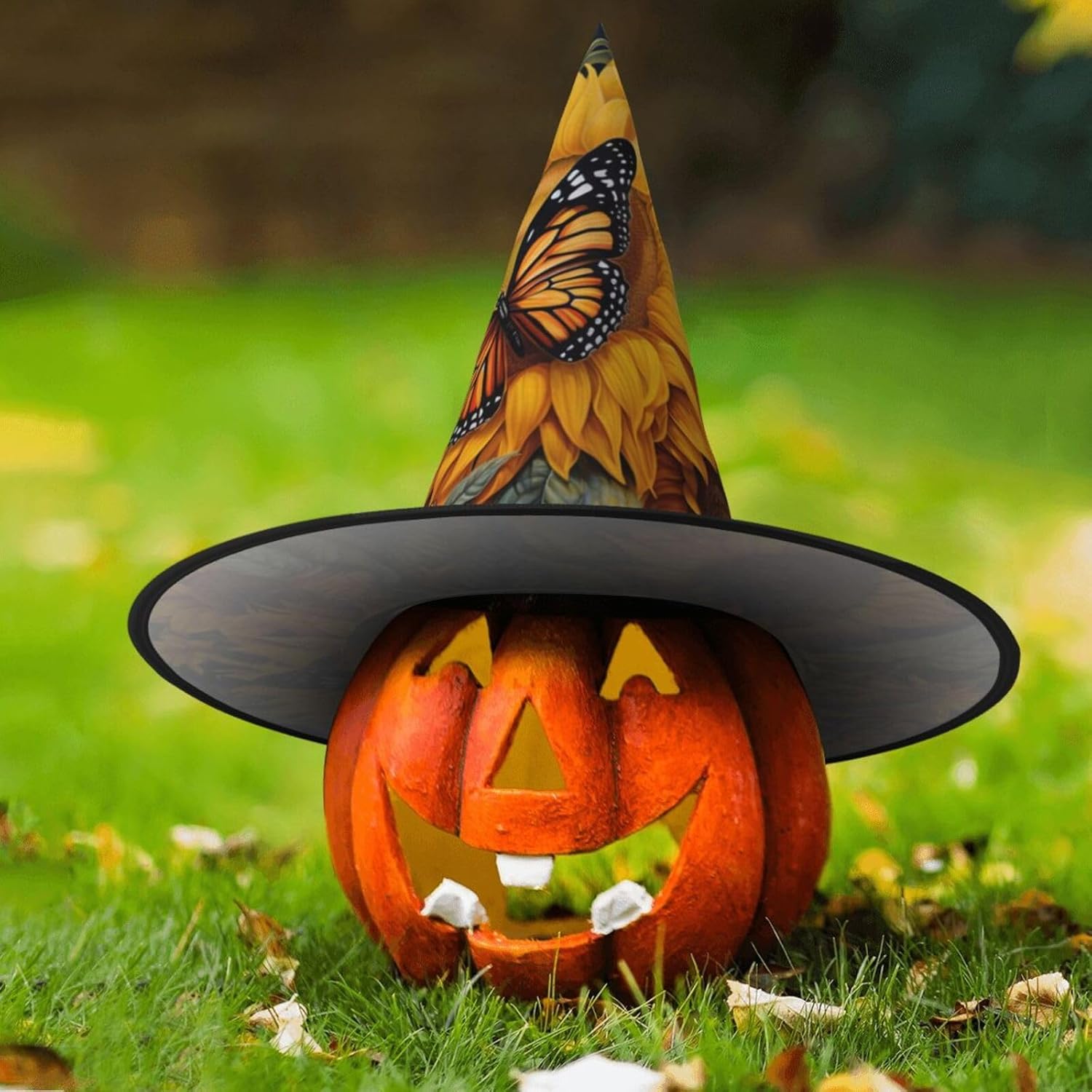 Cappelli da strega con stampa farfalla girasole,Cappelli da strega di Halloween per la decorazione di Halloween,Cappelli iconici per Halloween