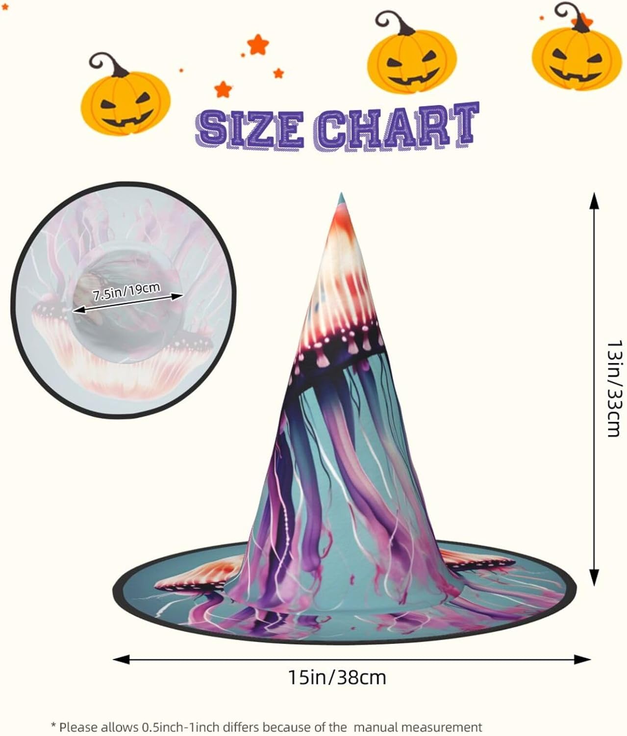 Realizzati in tessuto confortevole, morbido e Oxford, questi cappelli con stampa meduse sono ideali per Halloween e feste in costume. Il design unico e leggero consente di piegare e torcere le falde del cappello, offrendo una facile conservazione e portabilità. Con una dimensione che si adatta alla maggior parte, questi cappelli di Halloween con stampa medusa per uomini e donne sono ideali per carnevale, balli in maschera ed eventi di ruolo. Diventa il centro dell'attenzione in qualsiasi riunione! Inoltre, i nostri cappelli da strega sono facili da pulire: lavare a mano o in lavatrice, asciugare rapidamente e non richiedono candeggina. Festeggia Halloween con stile con i nostri cappelli da strega con stampa medusa!