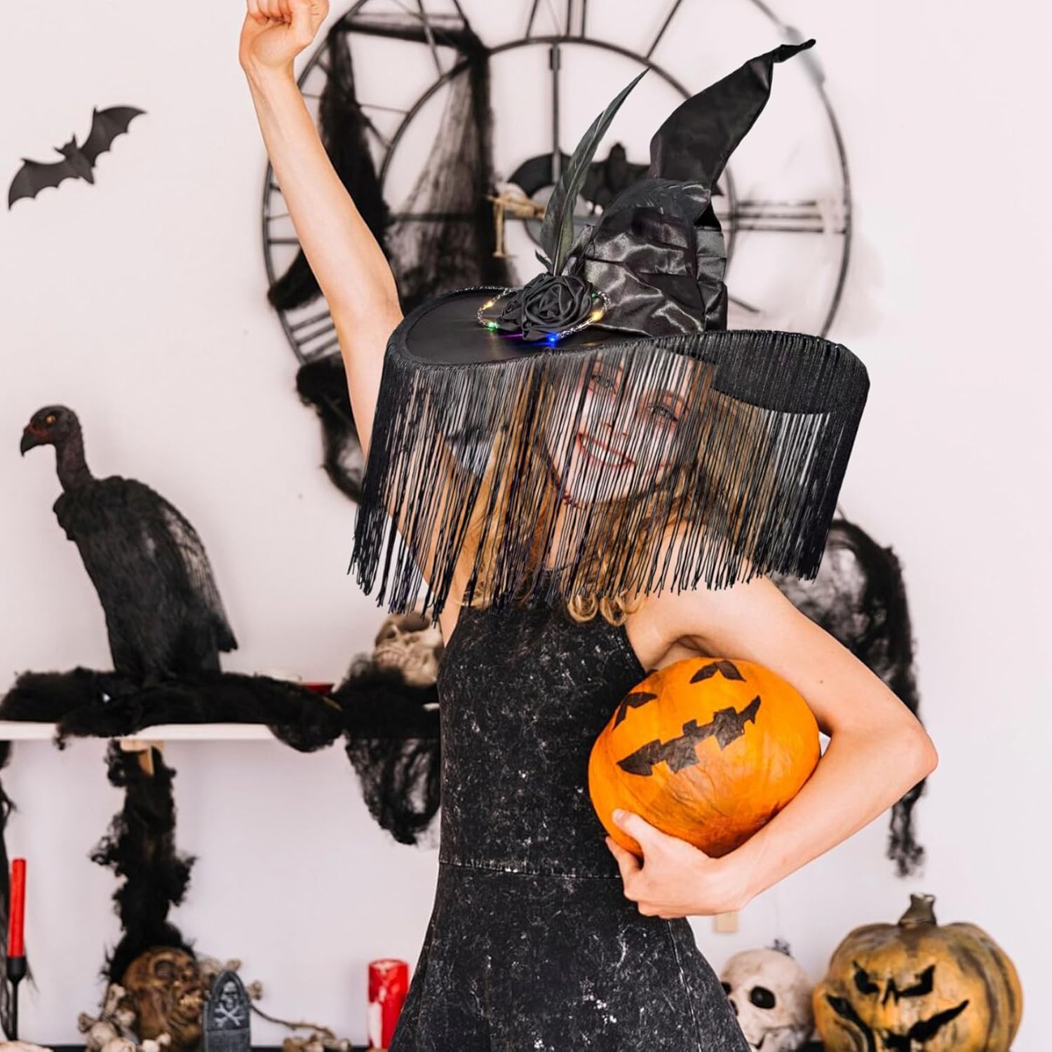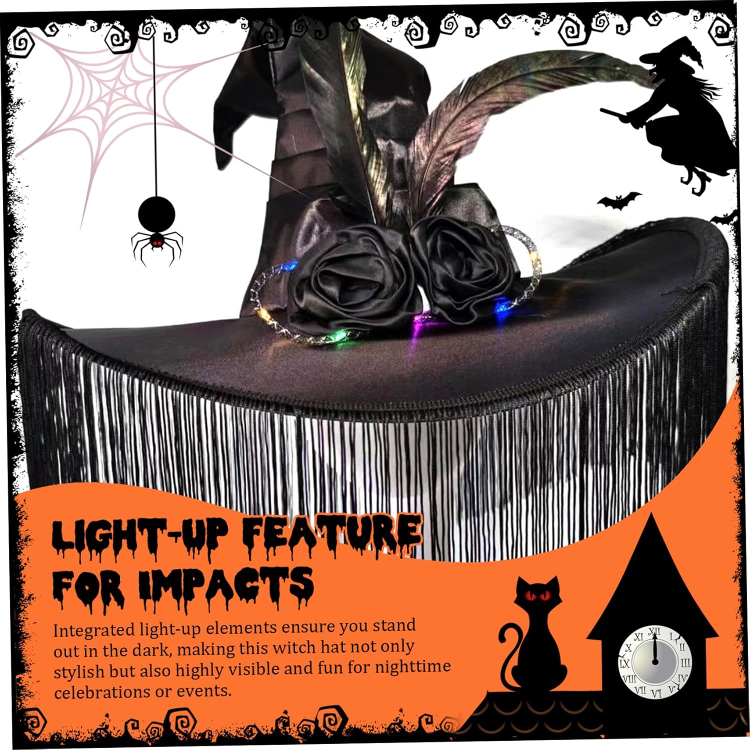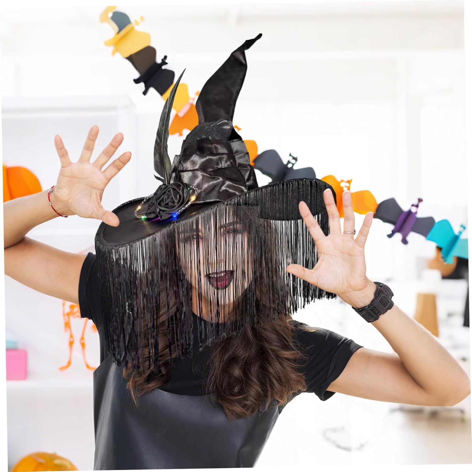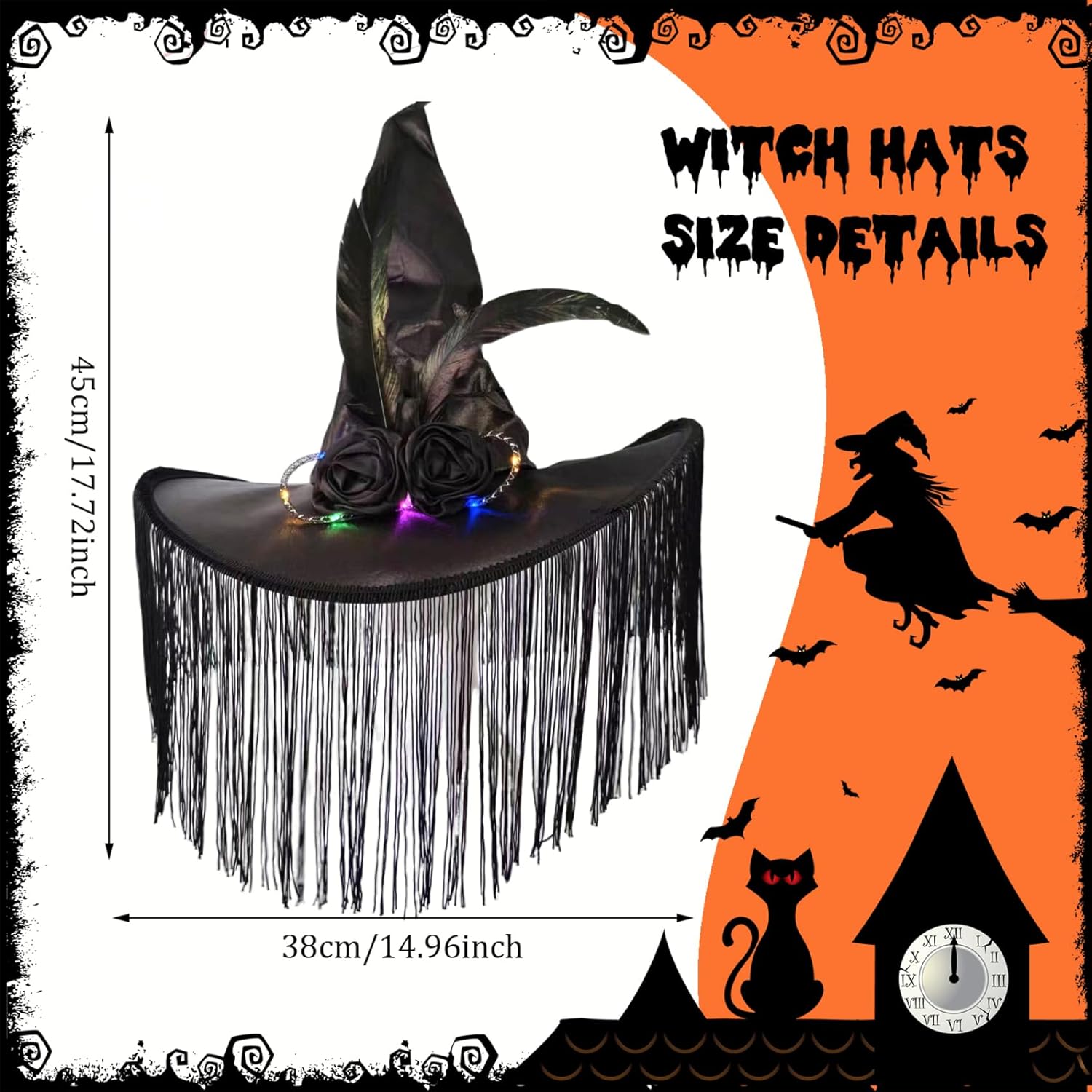 Descrizione prodotto Descrizione: Cappelli da strega da donna cappello da strega con nappe pieghettate illuminate per Halloween con rose e piume berretto a punta con tesa larga increspata per cosplay di feste di Halloween combina eleganza elegante e caratteristiche pratiche caratterizzato da un design con nappe splendidamente pieghettate con accenti di rose e piume che creano un look distintivo perfetto per le feste di Halloween e..cosplay;.arricchito da sottili luci integrate questo cappello da strega ti assicura di rimanere visibile e accattivante durante le celebrazioni notturne;.le dimensioni comode e regolabili promettono una vestibilità sicura da indossare tutto il giorno in vari eventi;.il suo design versatile abbina facilmente ai temi dei costumi da strega e alle decorazioni di Halloween rendendolo un accessorio essenziale per il tuo guardaroba stagionale o per le forniture per le feste;.realizzato con materiali di qualità resiste all'uso ripetuto e mantiene la sua forma affascinante e i suoi dettagli per molti Halloween a venire.. Caratteristiche:.. Cappelli da strega per donna.. -Colore: nero.. -Materiale: tessuto.. -Dimensioni: circa 45*38 cm/18 * 15 pollici circonferenza della testa: 20 cm/7 87 pollici.. Nota: Misurazione manuale prega di consentire lievi errori sulla dimensione.. I colori potrebbero presentare una leggera differenza a causa dei diversi schermi.. Pacchetto che comprende 1 x cappelli da strega per donna Avviso di sicurezza Avvertenza: Questo prodotto contiene piccole parti che possono rappresentare un rischio di soffocamento per i bambini. Tenere lontano da fonti di calore e fiamme. Evitare l'umidità. Maneggiare con cura per evitare che le decorazioni si stacchino causando lesioni. Leggere attentamente il manuale di istruzioni prima dell'uso. Non è un giocattolo, i bambini devono usarlo sotto la supervisione di un adulto.