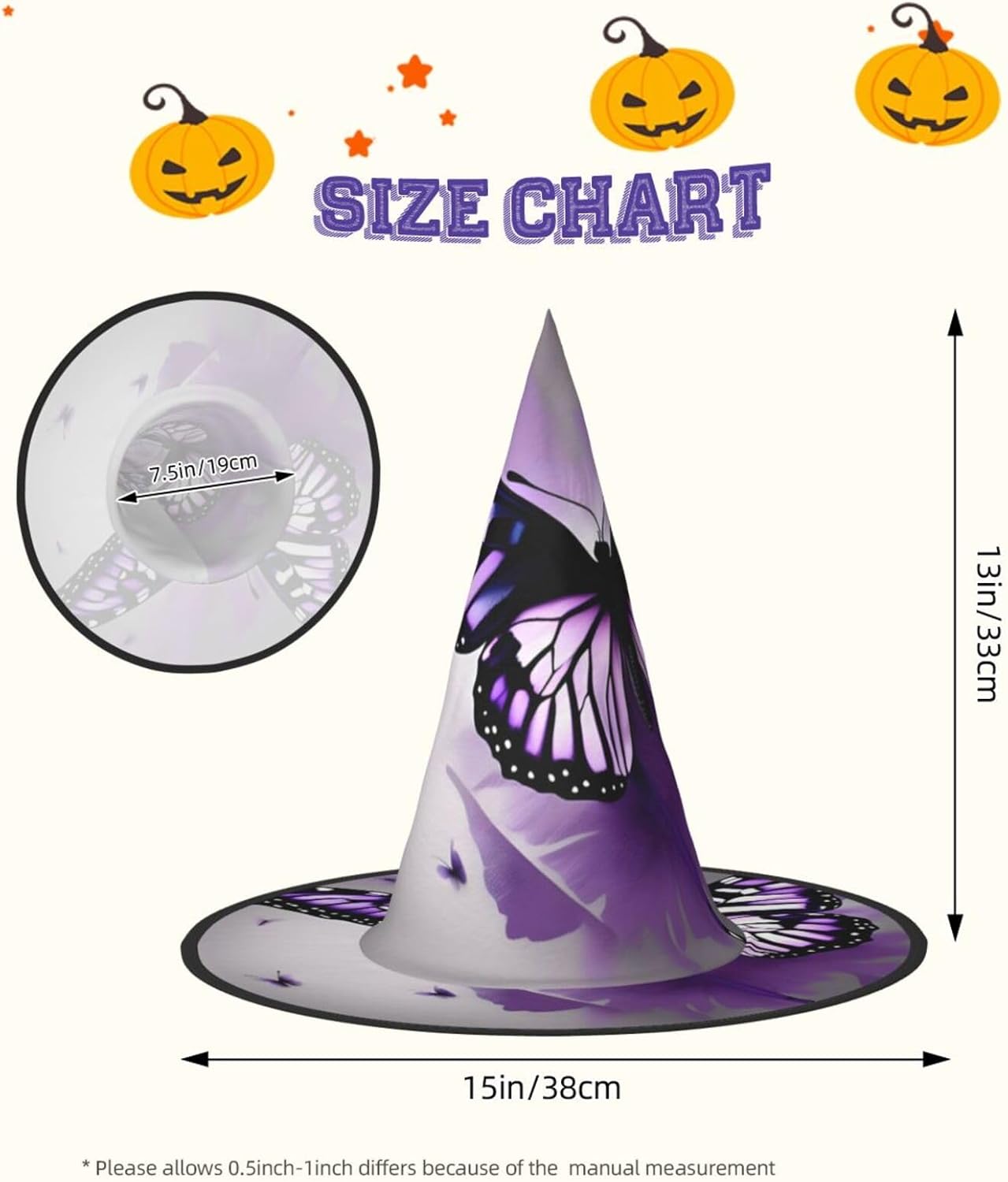 Realizzati in tessuto confortevole, morbido e Oxford, questi bellissimi cappelli viola con stampa artistica a farfalla sono ideali per Halloween e feste in costume. Il design unico e leggero consente di piegare e torcere le falde del cappello, offrendo una facile conservazione e portabilità. Con una dimensione che si adatta alla maggior parte, questi bellissimi cappelli di Halloween viola con stampa artistica a farfalla per uomini e donne sono ideali per carnevale, balli in maschera ed eventi di ruolo. Diventa il centro dell'attenzione in qualsiasi riunione! Inoltre, i nostri cappelli da strega sono facili da pulire: lavare a mano o in lavatrice, asciugare rapidamente e non richiedono candeggina. Festeggia Halloween con stile con i nostri bellissimi cappelli da strega viola con stampa artistica