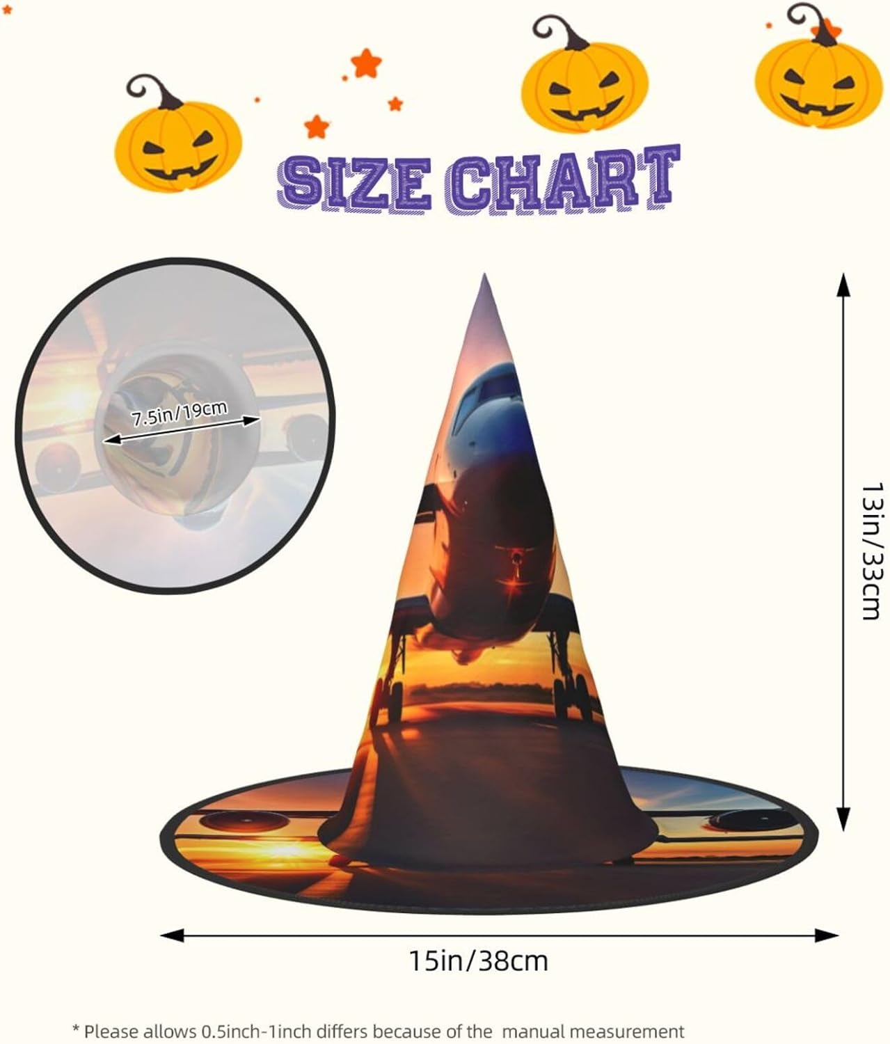 Realizzati in tessuto confortevole, morbido e Oxford, questi cappelli con stampa cielo tramonto aereo sono ideali per Halloween e feste in costume. Il design unico e leggero consente di piegare e torcere le falde del cappello, offrendo una facile conservazione e portabilità. Con una dimensione che si adatta alla maggior parte, questi cappelli di Halloween con stampa cielo tramonto aereo per uomini e donne sono ideali per carnevale, balli in maschera ed eventi di ruolo. Diventa il centro dell'attenzione in qualsiasi riunione! Inoltre, i nostri cappelli da strega sono facili da pulire: lavare a mano o in lavatrice, asciugare rapidamente e non richiedono candeggina. Festeggia Halloween con stile con i nostri cappelli da strega con stampa cielo tramonto in aereo!