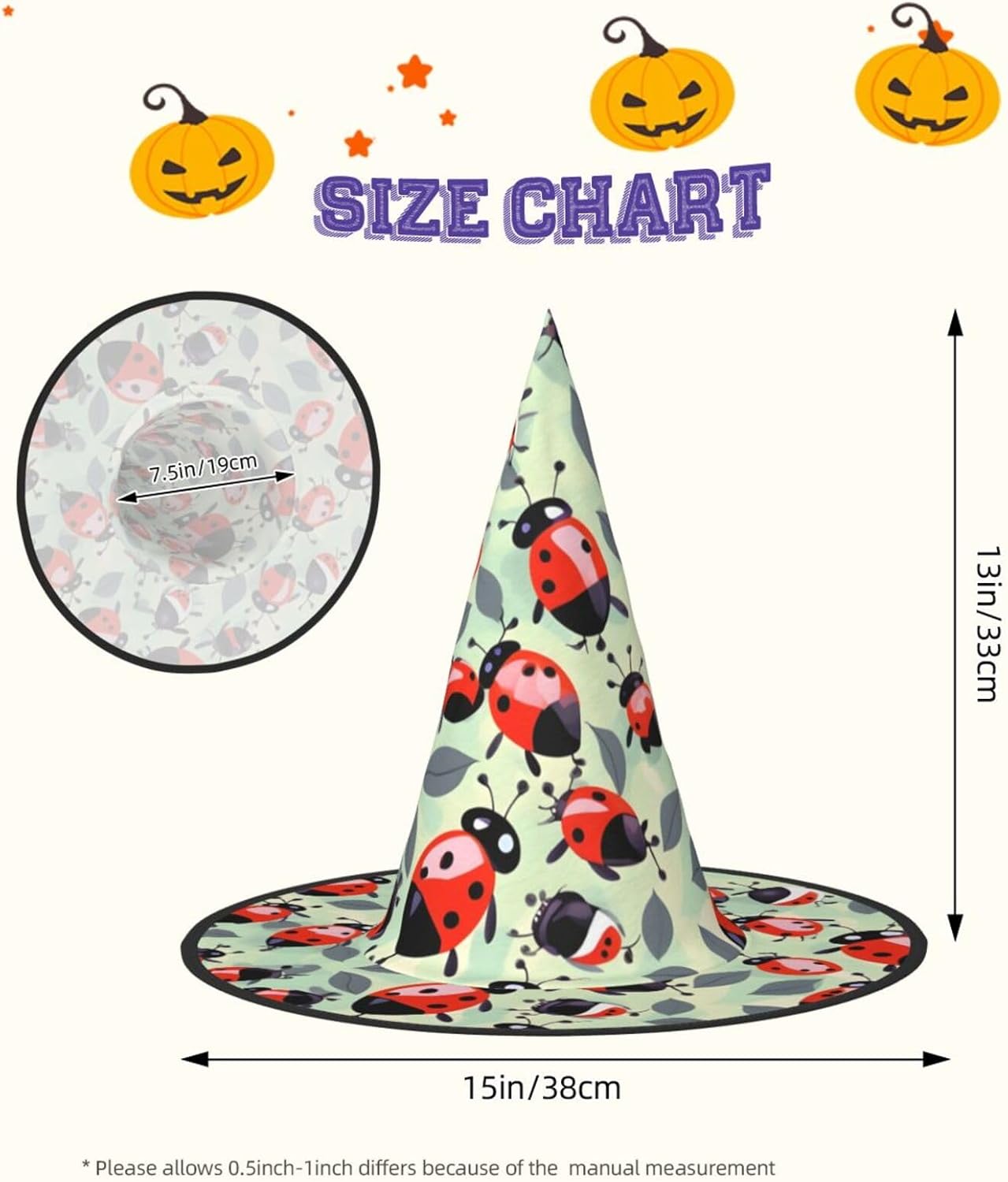 Realizzati in tessuto confortevole, morbido e Oxford, questi cappelli con stampa a tema coccinelle sono ideali per Halloween e feste in costume. Il design unico e leggero consente di piegare e torcere le falde del cappello, offrendo una facile conservazione e portabilità. Con una dimensione che si adatta alla maggior parte, questi cappelli di Halloween con stampa a tema coccinelle per uomini e donne sono ideali per carnevale, balli in maschera ed eventi di ruolo. Diventa il centro dell'attenzione in qualsiasi riunione! Inoltre, i nostri cappelli da strega sono facili da pulire: lavare a mano o in lavatrice, asciugare rapidamente e non richiedono candeggina. Festeggia Halloween con stile con i nostri cappelli da strega con stampa a tema coccinelle!