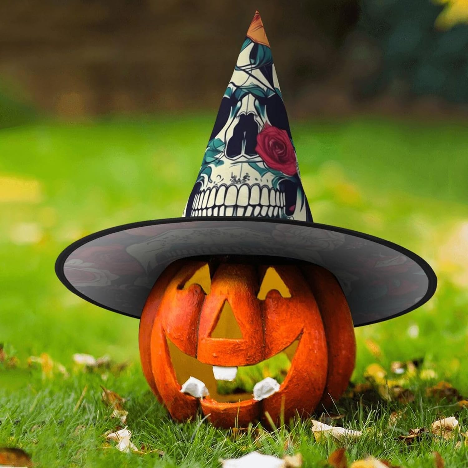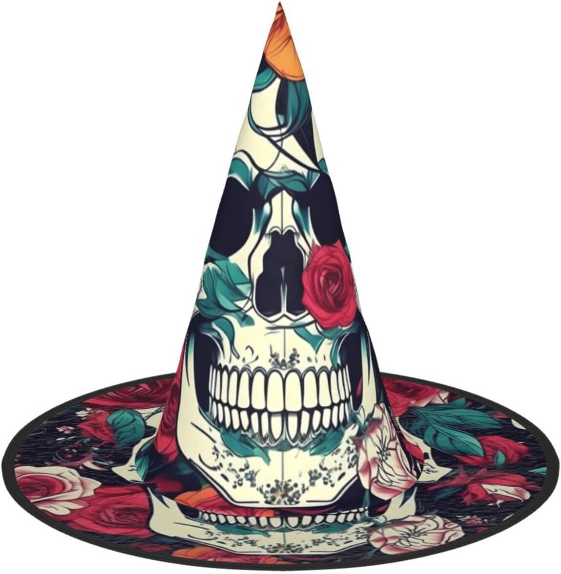 Realizzato con comodo panno Oxford, questo cappello da strega con stampa ornamentale con teschio floreale non è solo un accessorio; è un investimento per molte stagioni di Halloween a venire. Il design unico del cappello consente di restringere la parte superiore e la tesa di essere attorcigliata e piegata, rendendolo compatto e facile da riporre. Nonostante la sua struttura, è incredibilmente leggero e può essere trasportato ovunque senza problemi. Il nostro cappello da strega di Halloween con stampa ornamentale con teschio è progettato per adattarsi comodamente alla maggior parte delle persone, rendendolo una scelta ideale per qualsiasi festa di Halloween, carnevale, mascherata o evento cosplay. Il suo design accattivante ti renderà il punto focale della festa.