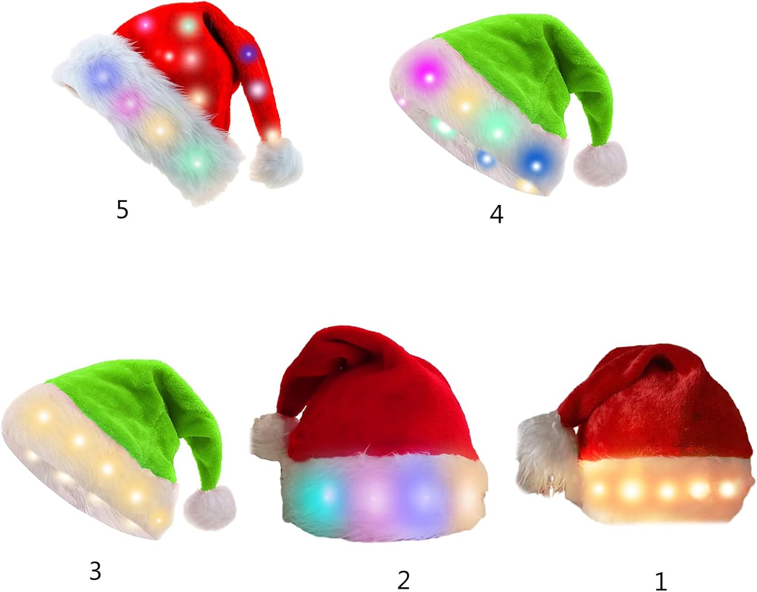Cappelli di Babbo Natale della peluche della luce del LED, cappelli di Babbo Natale per la festa di Natale, cappello di vacanza adulto per la festa dei bambini unisex Caratteristiche: Materiali in poliestere, emette un bagliore caldo e delicato, creando una felice festa Realizzato in tessuto morbido e confortevole, il nostro cappello da Babbo Natale è da indossare tutto il giorno. Ottimi accessori per feste in costume di Natale. Adatto a tutti coloro che amano festeggiare il Natale, compresi bambini, adolescenti e adulti. Diffondi l'allegria delle vacanze con questo accessorio unico e accattivante. Adatto per varie celebrazioni natalizie, come feste di Natale, riunioni di famiglia, centri commerciali e occasioni in ufficio. Aggiungi un tocco a qualsiasi occasione festiva con il nostro cappello da Babbo Natale luminoso. Preparati a brillare questo periodo natalizio con il nostro delizioso cappello di Babbo Natale a LED. Che tu stia partecipando a un evento festivo o semplicemente vuoi aggiungere un tocco festivo ai tuoi outfit. Specifiche tecniche: poliestere. Taglia Taglia cinese, seguire la tabella delle taglie per selezionare per favore) Tipo: cappello con luci bianche, cappello leggero colorato, cappello verde con luci bianche, cappello verde chiaro colorato, cappello con luci complete opzionali. Dimensioni: lunghezza 48 cm, larghezza 35 cm. La confezione include: 1 cappello natalizio. Nota: Considerare un margine di errore di 1 mm dovuto alla misurazione manuale. A causa della differenza tra i diversi monitor, l'immagine potrebbe non riflettere esattamente il colore dell'articolo.