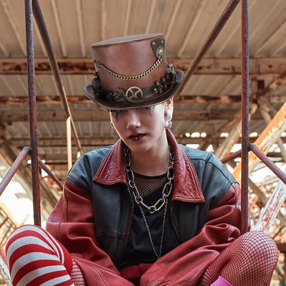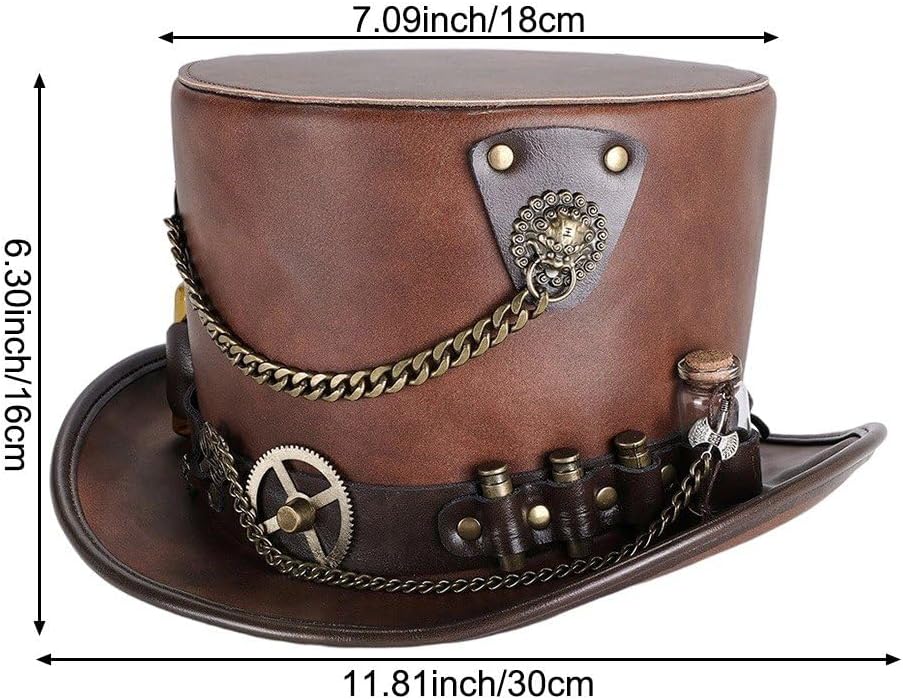 Questo cappello ha una taglia unica e può essere abbinato a una varietà di forme della testa, adatto alla maggior parte delle persone. Perfetto per gli amanti del cosplay, degli animali da festa e degli appassionati di cultura che vogliono distinguersi in mezzo alla folla. Perfetto per balli in maschera, festival, feste a tema o anche per abbellimenti unici per il tuo look alla moda di tutti i giorni. Questo cappello steampunk è l'aggiunta perfetta al tuo look di Halloween, realizzato in pelle PU per comfort e durata. La decorazione di questo cappello incarna l'essenza della moda steampunk, rendendolo un accessorio ideale per coloro che vogliono fare una dichiarazione.