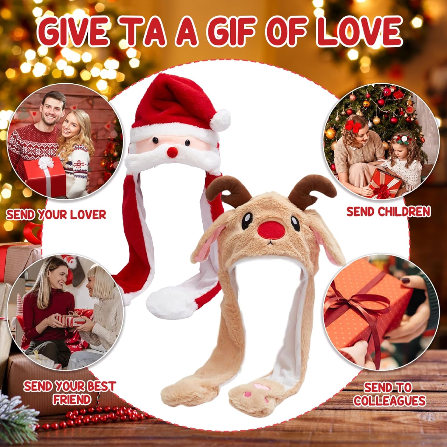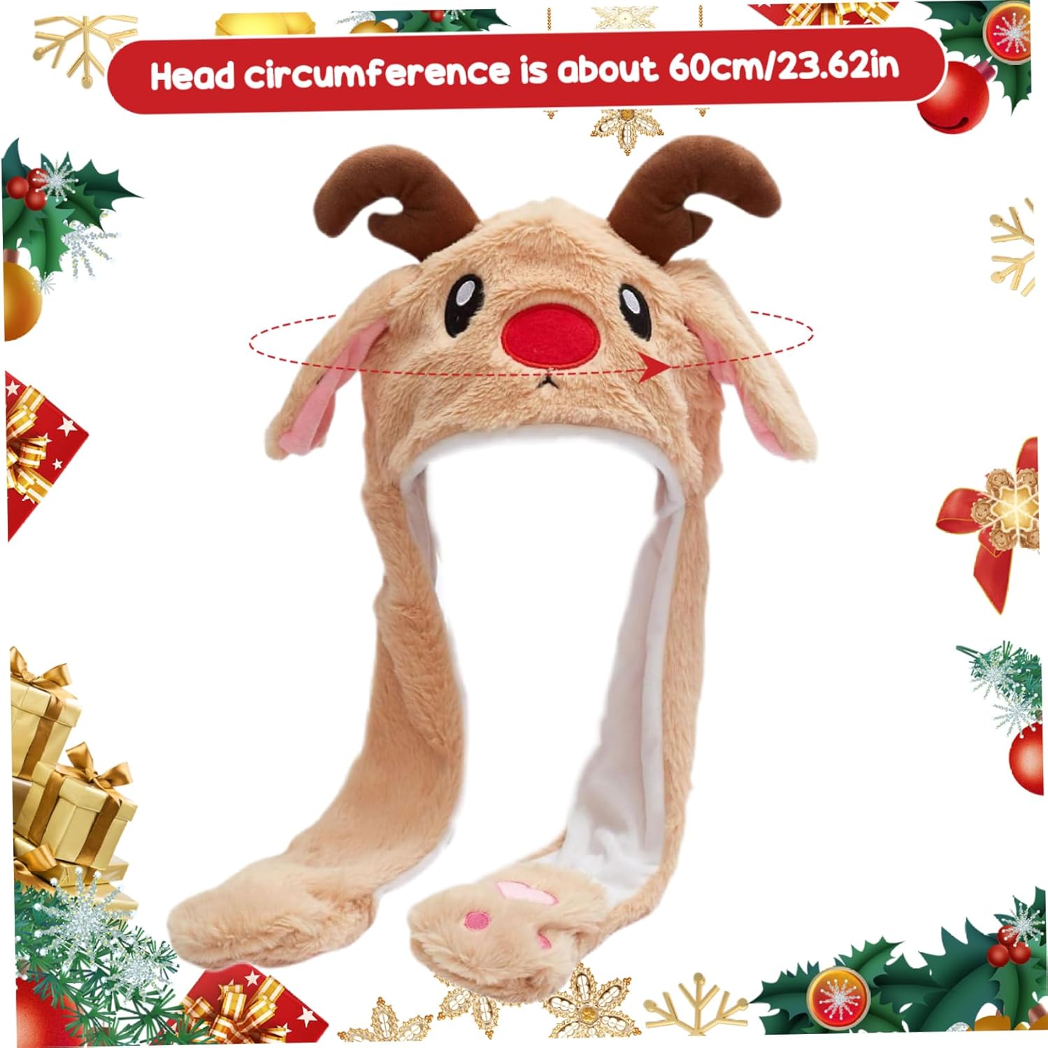 Materiale di qualità: realizzato con materiali morbidi e soffici di peluche, questo cappello di Natale offre comfort quando lo ha acceso..Il design di dimensioni gratuite garantisce una misura confortevole per bambini e adulti, rendendolo un accessorio versatile per tutta la famiglia. Presente di vacanza perfetta: alla ricerca di un regalo di Natale unico e divertente?.Questo cappello auricolare in movimento è una scelta eccellente sia per i bambini che per gli adulti..È una deliziosa sorpresa che porterà sorrisi e risate sul viso del destinatario..Che si tratti di famiglia, amici o colleghi, questo cappello è un regalo di vacanza perfetto. Unico e accattivante: distinguersi dalla folla con questo simpatico cappello da cartone animato..I colori vibranti e il design adorabile lo rendono un accessorio festoso e che attira l'attenzione per feste di Natale, incontri per le vacanze o persino usura quotidiana durante la stagione invernale. Divertimento e giocoso: questo cappello da orecchio commovente porta un livello completamente nuovo di divertimento e giocosità ai tuoi festeggiamenti invernali..Le orecchie si muovono quando si preme l'airbag su entrambi i lati, creando un'esperienza interattiva e divertente per bambini e adulti. Thermal and Festive: rimanere accogliente ed elegante con questo cappello invernale termico festivo..Il cappello non solo aggiunge un tocco di allegria per le vacanze, ma fornisce anche isolamento per mantenere la testa calda con il clima freddo..È l'accessorio perfetto per completare il tuo outfit invernale mentre si diffonde gioia per le vacanze.
