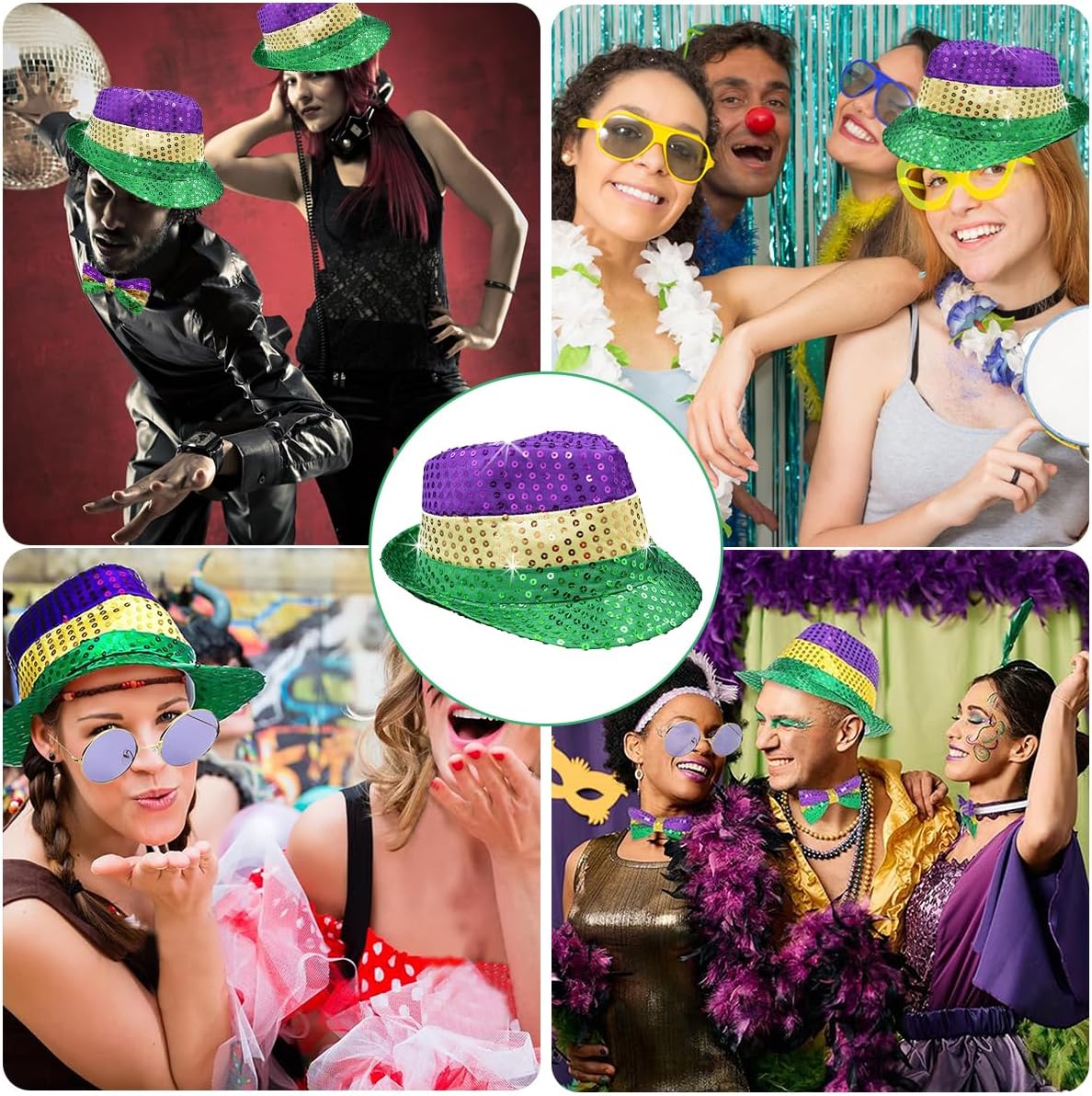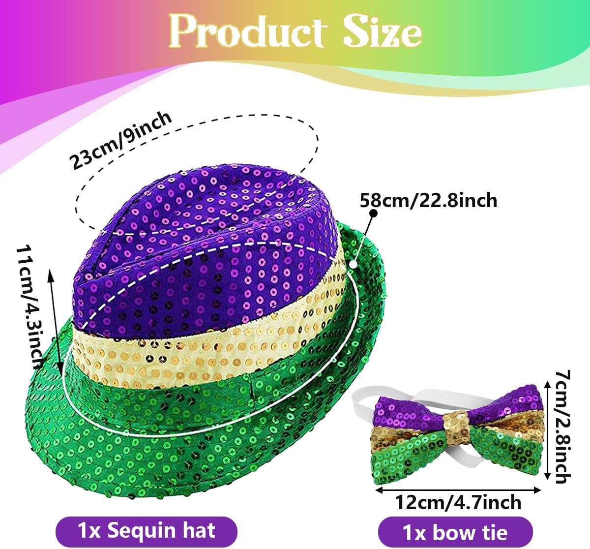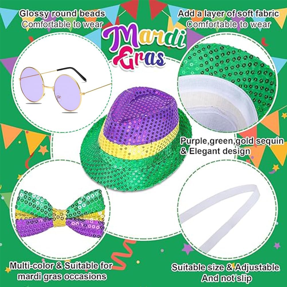 L'ensemble comprend un chapeau, des lunettes et un nœud papillon à paillettes scintillantes. Idéal pour faire la fête, ou pour le carnaval, les couleurs sont gaies et brillantes. Adapté pour les enfants et adultes... DE TRÈS BONNE QUALITÉ, JE RECOMMANDE SANS HÉSITER...