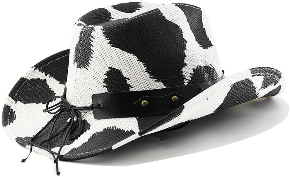 Materiale di qualità: il cappello cowboy con stampa mucca è realizzato con paglia di qualità, questo cappello è comodo e resistente. traspirante, non sbiadisce facilmente, resistente all'usura, può essere utilizzato a lungo Vestibilità per adulti: cappello cowgirl preppy adatto a donne, uomini, ragazze adolescenti. Perfetto per le persone alla moda, questo cappello si adatta a varie occasioni casual. Taglia: il cappello cowboy con stampa mucca è 56-58 cm/22,05-22,83 pollici, taglia unica per tutti. Disegni: questo cappello è progettato in stile cappello cowboy, classico e retrò, con stampa di mucca in bianco e nero, creativo, alla moda, moderno e accattivante, esalta il tema del cowboy, ti distinguere dalla massa. Ampie applicazioni: questo cappello cowboy nero e bianco è perfetto per molte occasioni, come feste a tema cowboy, cosplay, spettacoli teatrali, feste in maschera, Halloween, carnevali, compleanni e altro ancora, puoi anche indossarlo tutti i giorni, l'orlo ti aiuterà a bloccare il sole in estate e a mantenere testa calda in inverno, può essere utilizzato in tutte le stagioni.